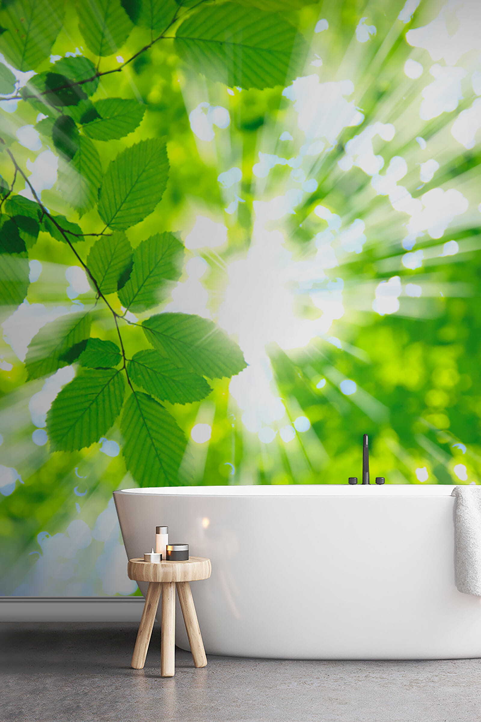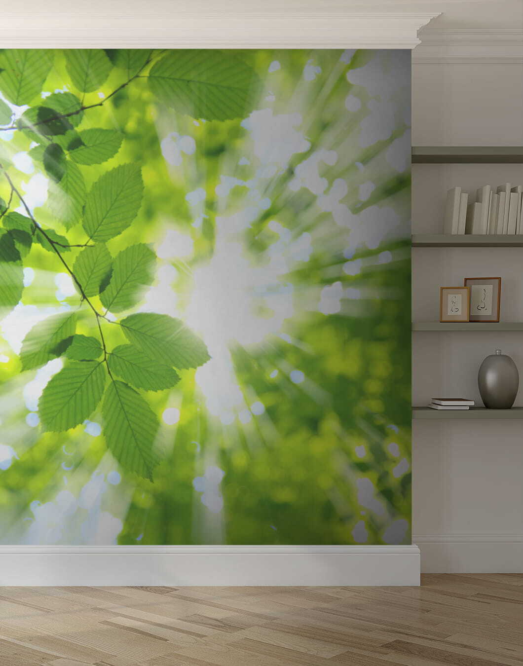 Transform your space with the refreshing vibe of “Sunlight Streaming Through Green Leaves.” This stunning mural envelops your walls in a burst of vibrant greens and soft, dreamy light. Imagine sipping your morning coffee, feeling like you’re basking in nature’s embrace—all from your cozy corner. It’s like outdoor tranquility, minus the bugs. Perfect for a living room or even a home office, this mural sparks joy and creativity. Plus, who wouldn’t want a bit of sunshine indoors? Let this artwork brighten your days and create a serene retreat right at home!