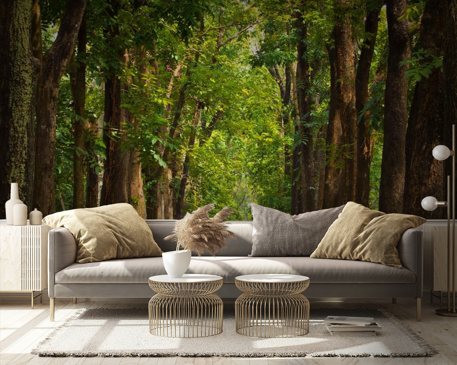 Transform your space with this captivating wall mural featuring a serene path lined with majestic trees. Imagine walking down this tranquil pathway every day without leaving your home—each glance at the mural brings a sense of calm and connection to nature. Sunlight filters through the leaves, creating a warm, inviting atmosphere that makes even the grumpiest cat perk up with curiosity. Whether it’s in a living room or a cozy reading nook, this mural whispers stories of peaceful strolls and lazy afternoons. Plus, the earthy tones add just the right touch of elegance. Who needs an outdoor escape when you can have this charming view right on your wall?