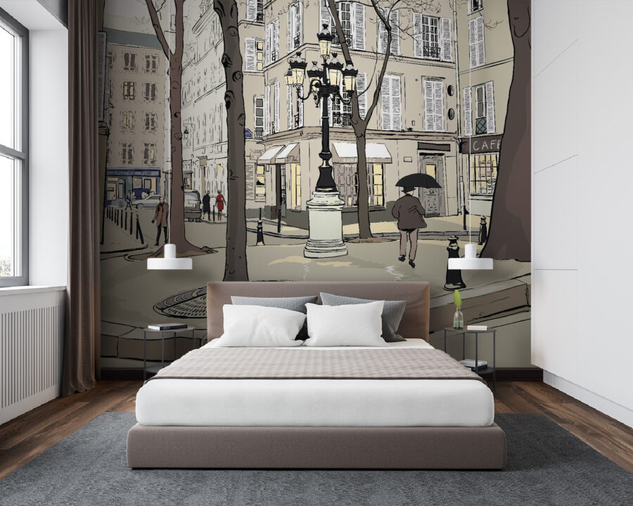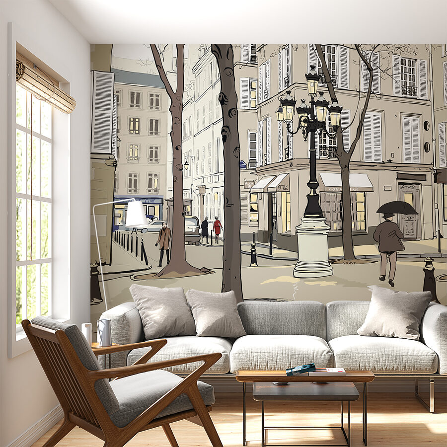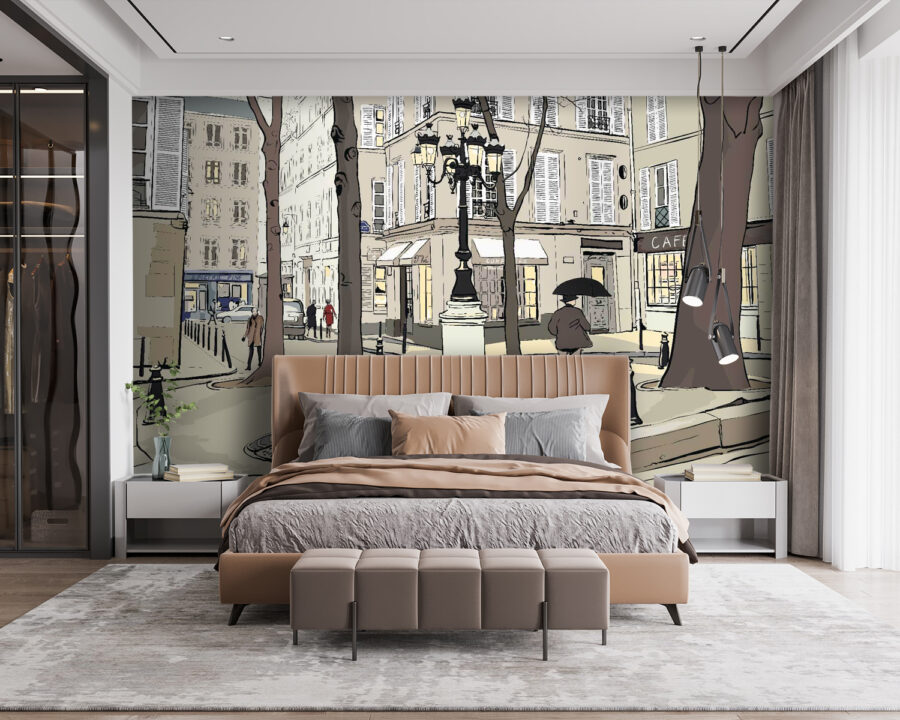 Transform your space into a charming little slice of the city with this delightful wall mural. Imagine stepping into a quaint street, where each building tells a story and coffee shops whisper secrets of the past. The muted colors create a cozy atmosphere, perfect for reading or deep conversations. You can almost hear the gentle rustle of leaves and the soft tap of shoes on cobblestone. It’s like having a mini getaway right in your living room, minus the travel fuss. Perfect for those who love a bit of whimsy and warmth in their decor, this mural invites you to dream a little bigger every day.