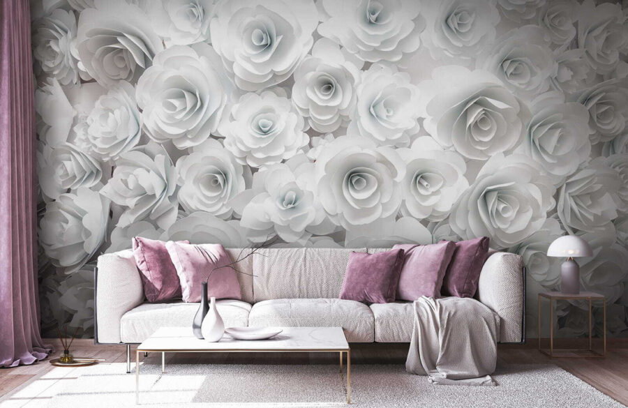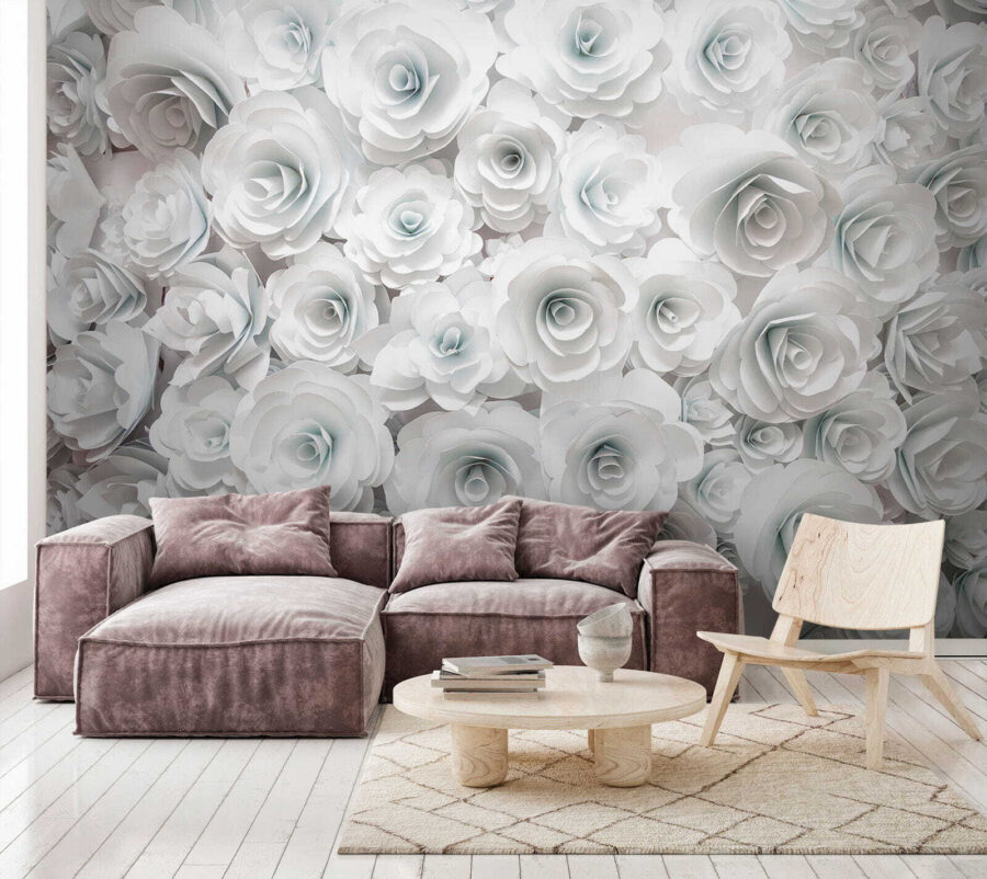 These beautifully crafted blooms add a touch of elegance while keeping things light and airy. Perfect for brightening up a dull corner or making a bold statement above a cozy sofa. Each petal seems to whisper, “Relax, you’re home.” And let’s not forget—the best part? No watering required! With this mural, every season feels like spring.
