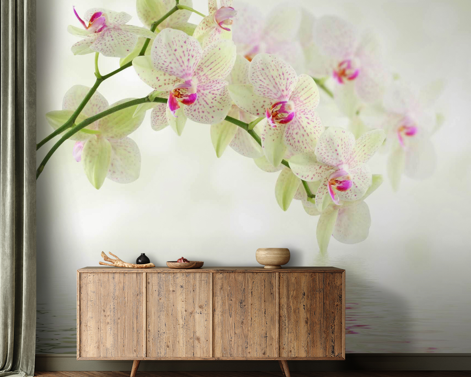 Transform your space with the enchanting beauty of this orchid mural, perfectly captured against a serene backdrop of tranquil water. Picture it—an inviting splash of delicate petals that seems to breathe life into any room. Friends might just feel the urge to take a second look, perhaps even do a double-take. The soft colors create a relaxing vibe, perfect for unwinding after a long day — just imagine curling up with a book nearby.