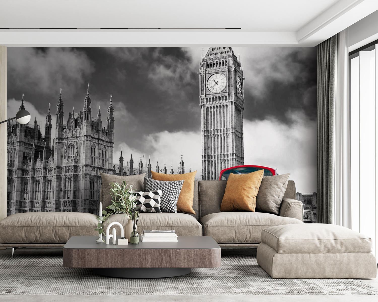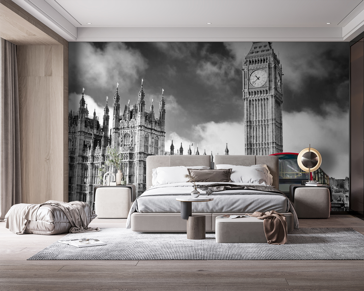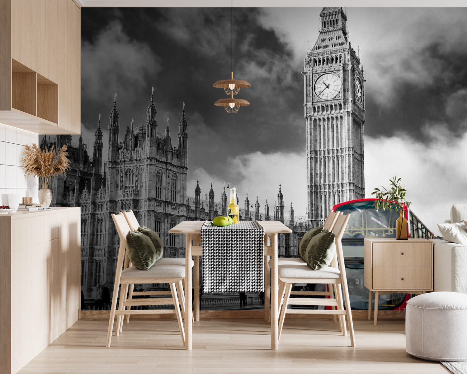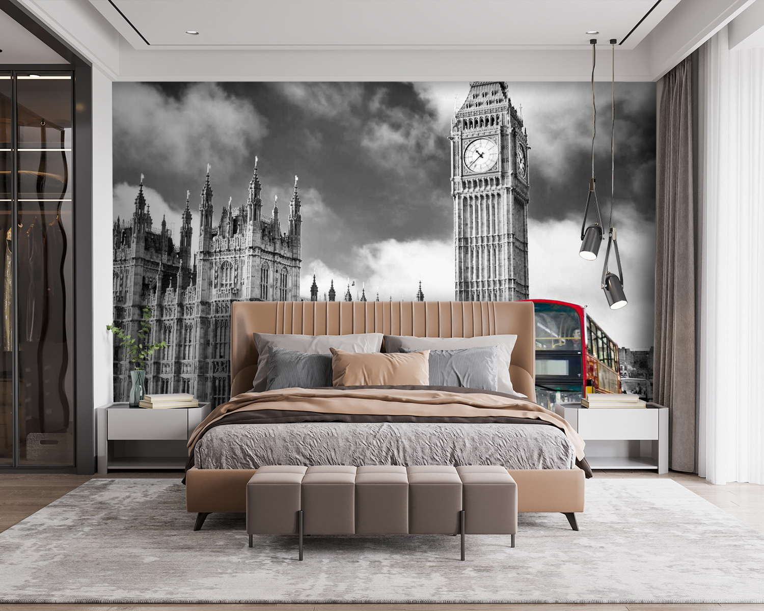 Transform your space with this stunning mural featuring a vibrant red double-decker bus gliding past a majestic clock tower—yes, it’s practically waving you over for a cup of tea! The mix of black-and-white architecture and that pop of red feels like a postcard from London, right on your wall. Imagine friends walking in, eyes lighting up with nostalgia or intrigue. It’s not just decor; it’s a conversation starter, sparking stories about adventures abroad. Get ready to embrace those city vibes every day! Perfect for anyone who loves a dash of whimsy and a sprinkle of charm.