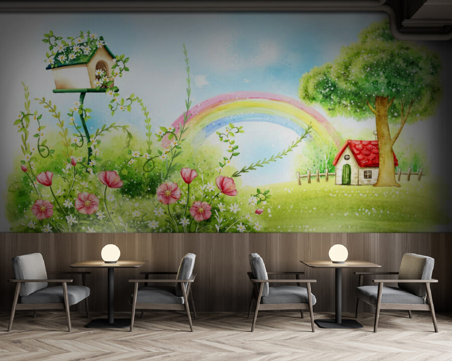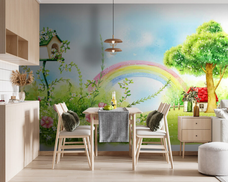 Transform your space with this delightful “Wall Murals House Under a Tree.” Imagine walking into a room that feels like a cozy garden escape, where a cheerful little house sits beneath a sprawling tree, surrounded by vibrant flowers and a rainbow that just can’t help but brighten the day. Kids (and adults too) will feel the joy of nature right on their walls, sparking their imagination and transporting them to a world where anything is possible. It’s like a daily reminder to bring a little sunshine and whimsy into life. Who wouldn’t want to sip their morning coffee while gazing at a scene that feels so serene? This mural’s soft colors and playful vibe create a cheerful atmosphere, perfect for playtime or just a moment of calm. It’s a breath of fresh air for any room!