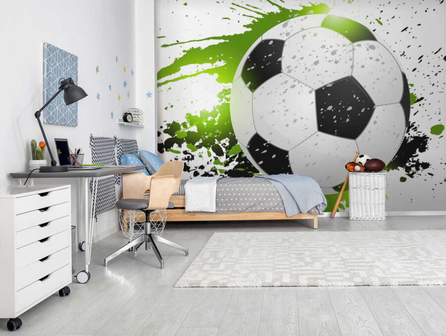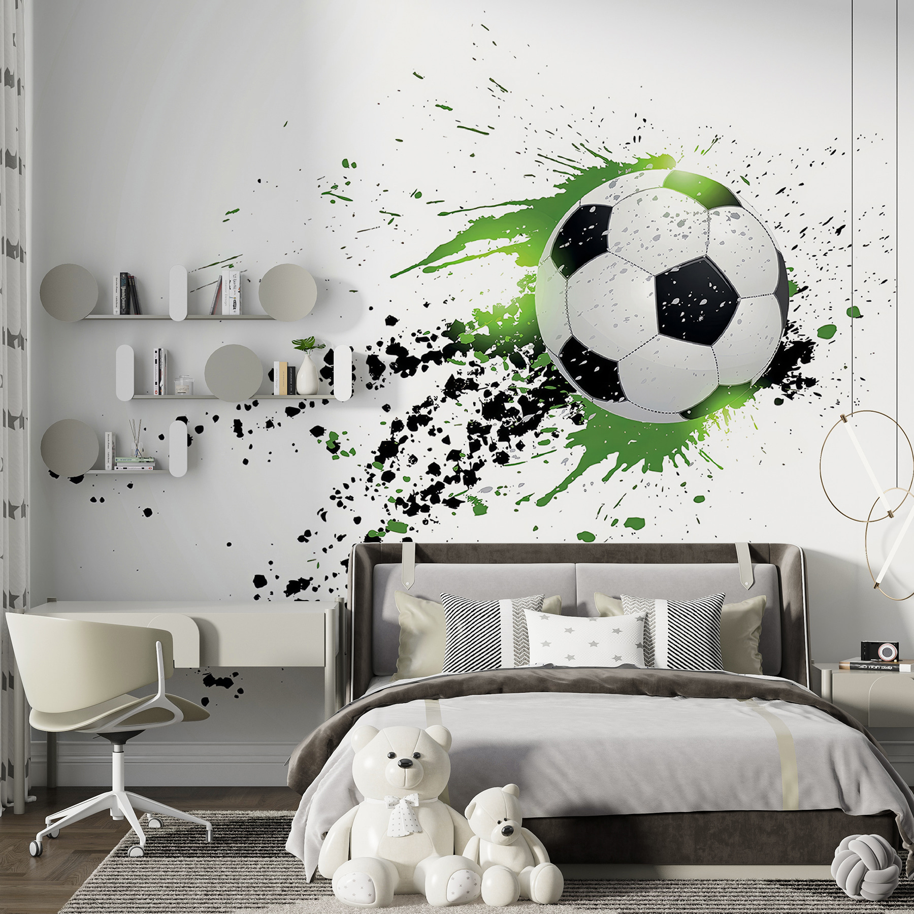 Transform any child’s room into a vibrant game zone with this “Soccer Ball with Artistic Splatter” mural. It’s not just a wall decoration—it’s a splash of energy and excitement! Picture it: a kid racing across the room, eyes wide as they dive into their own soccer match, all right in their room.