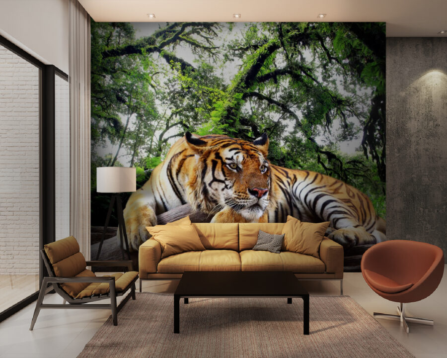 Transform your space with this stunning “Tiger Lying on a Log” wall mural. Imagine walking into a room where a majestic tiger lounges, bringing the wild right into your home. Its vibrant stripes and piercing gaze create an atmosphere that’s both calming and adventurous—perfect for daydreamers and nature lovers alike. This mural invites whispers of the jungle, making you feel as if you’re sharing a quiet moment with this magnificent creature. It’s like having a piece of the tropics right on your wall, stirring a sense of wonder every time you glance its way. Plus, it’s great for sparking conversations—guests won’t be able to resist sharing their favorite tiger tales!