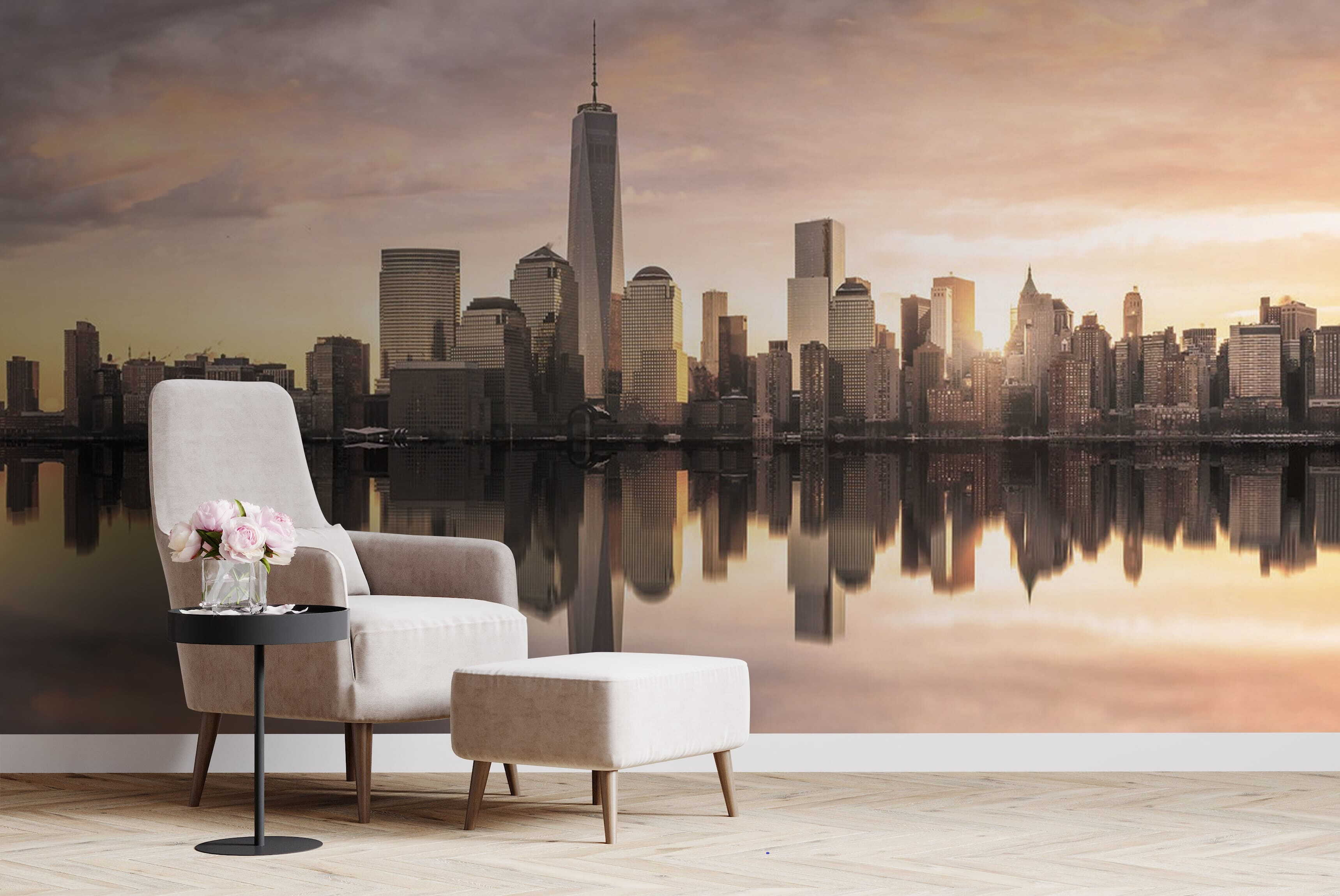 Transform your space with this captivating wall mural, titled “Reflection of a City in Water.” Picture a serene city skyline mirrored in a peaceful body of water, blending urban energy with tranquil vibes. It’s not just a pretty scene—it evokes that perfect moment when the busy world quiets for a breath. The warm hues and glossy reflections invite daydreams of evening strolls by the waterfront, where the chaos of the day fades away. Hang it in a living room or office, and watch conversations flow as freely as the water. You might even catch someone pondering life’s mysteries now and then. A little whimsy for any room!