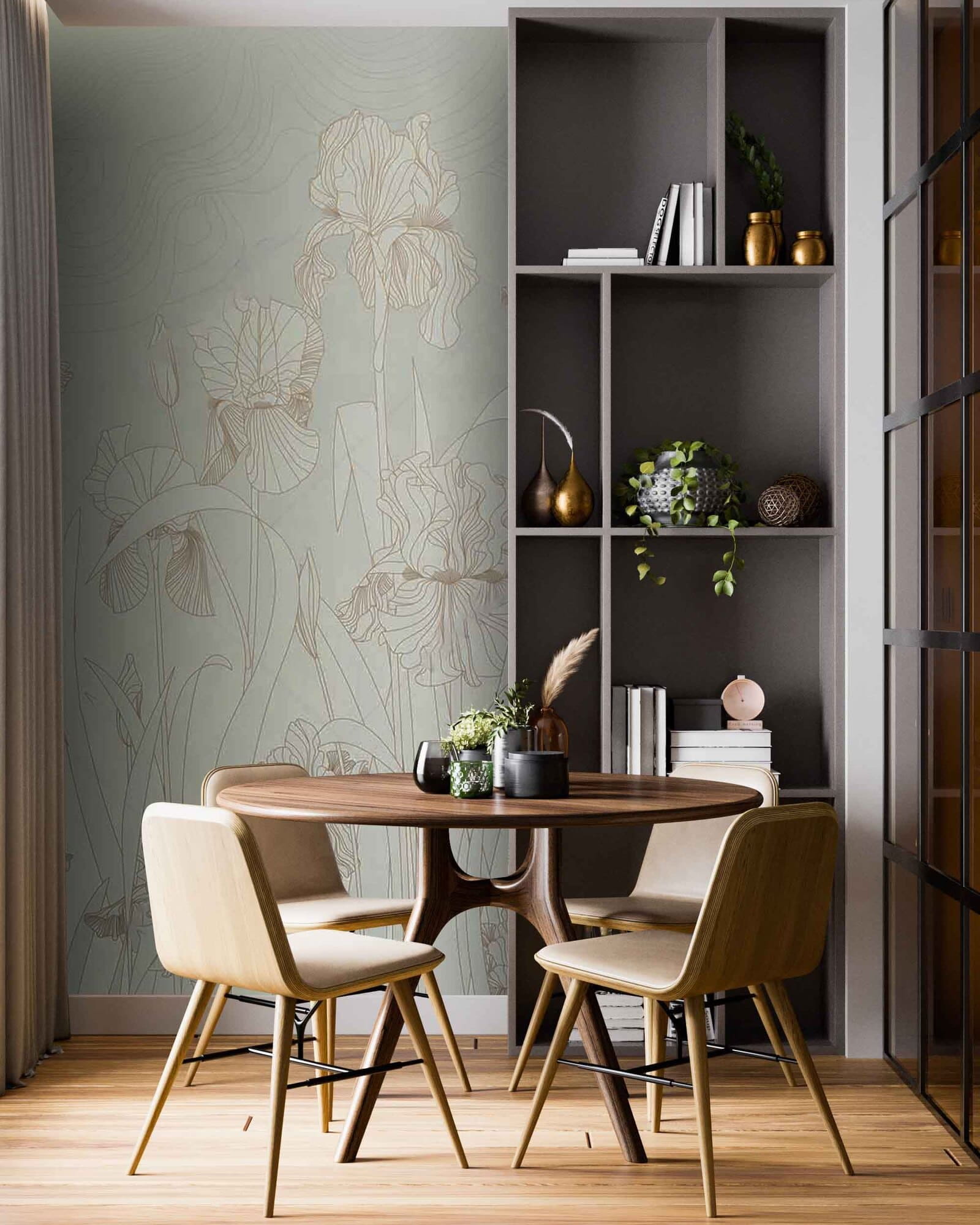 Transform your space with “Whispers of Nature in Soft Hues.” This mural feels like a gentle stroll through a tranquil garden, where every petal whispers secrets of serenity. The soft, muted colors create a soothing backdrop, perfect for daydreaming or tackling life’s never-ending to-do lists. Imagine sipping tea while surrounded by delicate iris blooms, their elegance inviting calmness into your home. It’s like bringing a piece of the outdoors in, without the pesky bugs! Easy to apply and even easier to love, this mural will turn any wall into a serene escape.