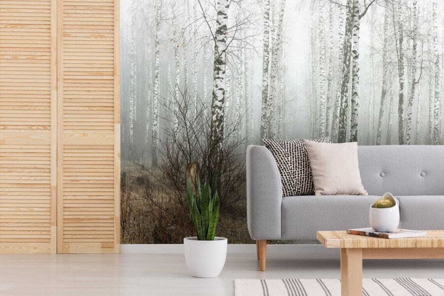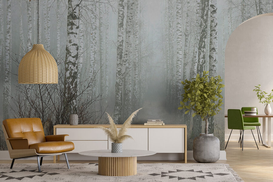 Transform your space into a serene woodland escape with this enchanting wall mural featuring a charming tree stump nestled amidst a misty birch forest. It’s like bringing a piece of nature indoors—minus the bugs and muddy shoes. Just imagine cozying up with a good book while surrounded by those tall, whispering trees. The soft, muted tones offer a calming vibe, perfect for a living room or a tranquil reading nook. Every glance at this mural might just evoke a sense of peace, like a gentle walk on an autumn morning—fresh, invigorating, and a bit magical. Perfect for adding a touch of whimsy or for those days when you need a nature fix without the hiking gear.