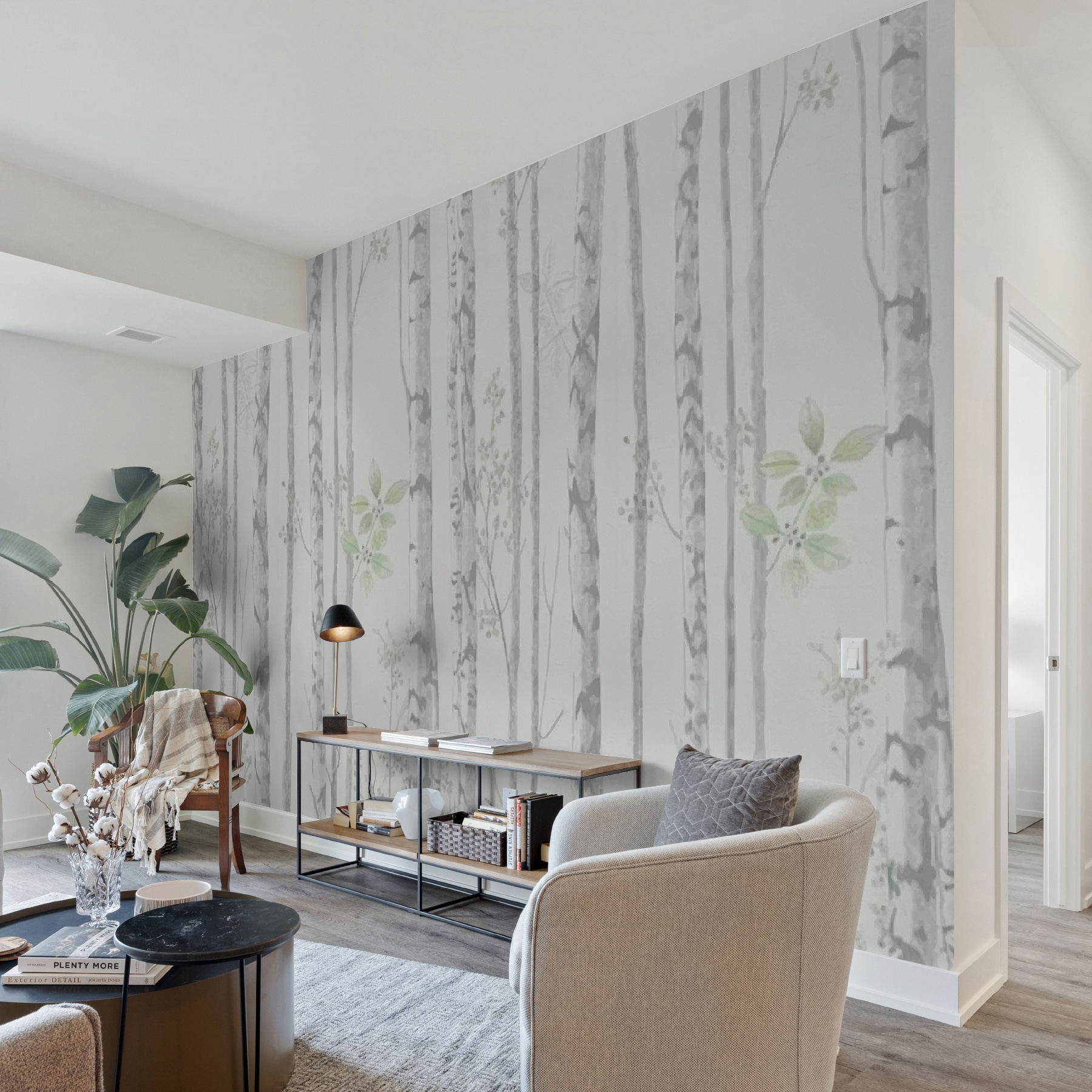 Transform your space into a serene oasis with the “Birch Forest with Gentle Greenery” mural. Imagine stepping into a peaceful woodland every time you enter the room. The soft gray tones of birch trees stand tall, like silent sentinels, while whispers of greenery peek through, adding a lovely touch of warmth. It’s perfect for creating a cozy nook or a refreshing backdrop for a living space. Whether you’re curling up with a book or entertaining friends, this mural brings nature indoors. It’s like a mini-vacation without leaving home—who doesn’t want that? Plus, it could spark all sorts of wild daydreams about forest adventures. Fun, right?