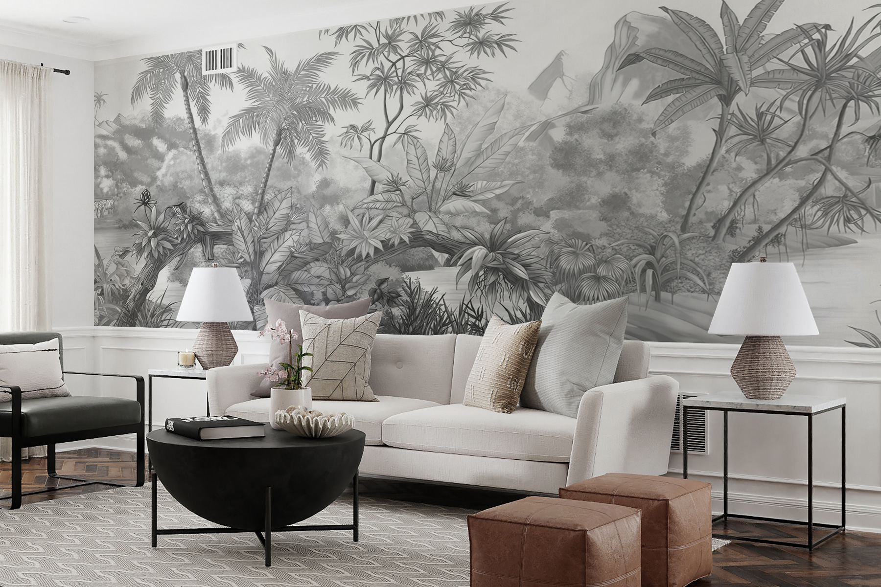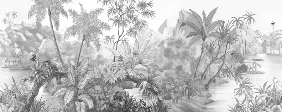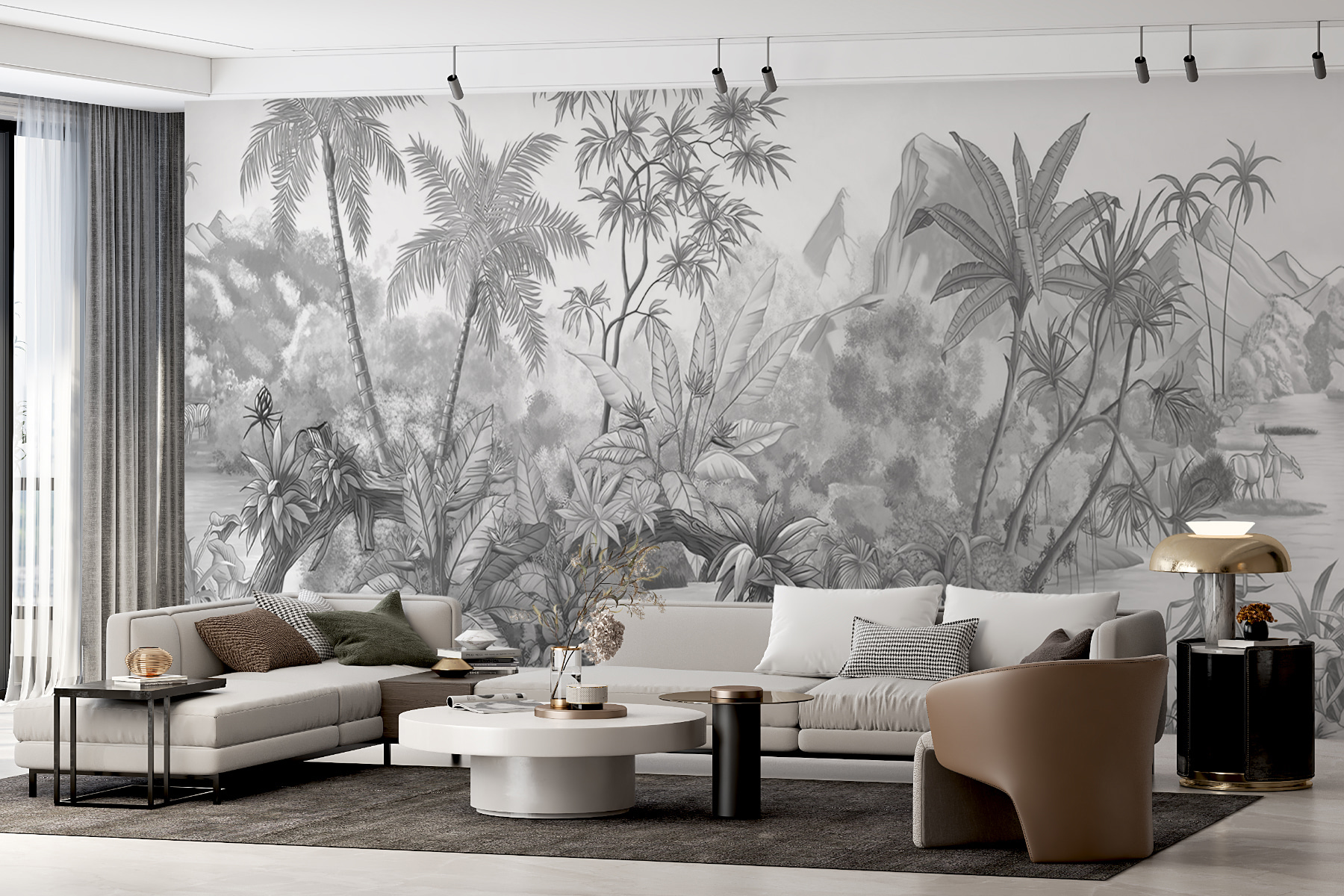 Picture this: sipping your morning coffee, gazing at the soft, monochrome delight of zebras creeping by a tranquil river. It’s like being on a mini safari without leaving home! And hey, even if you’ve got a zebra-print addiction, it’s totally okay. Embrace it! This mural effortlessly brings the outside in, transforming your space into a calming jungle retreat. Perfect for a feature wall that’ll have friends wondering how you found such a gem!