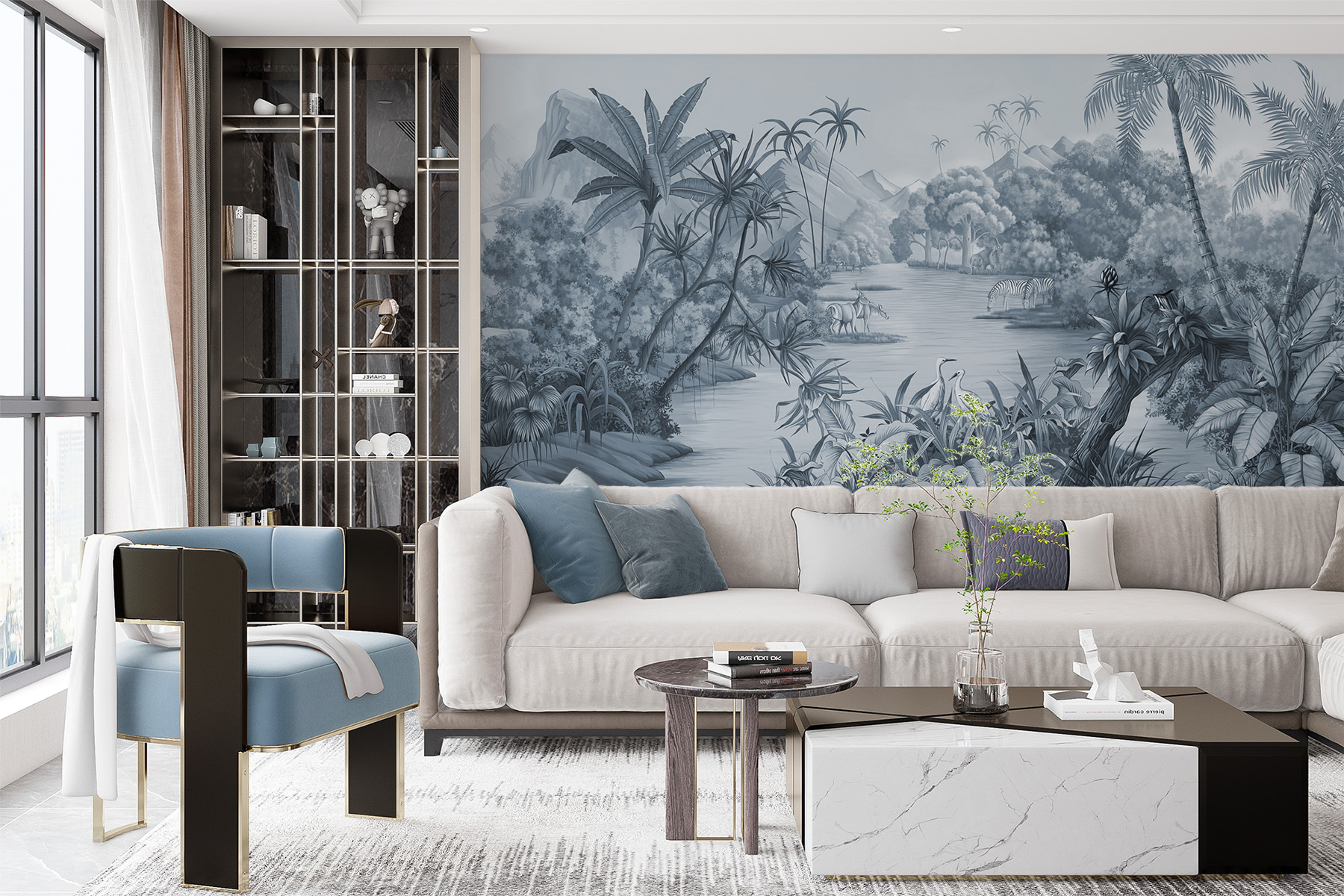 Transform your space into a serene escape with this enchanting wall mural featuring a peaceful animal scene. Imagine stepping into a lush jungle, where elegant zebras and graceful birds quietly mingle by a shimmering river. The delicate shades of gray create a dreamy atmosphere, perfect for adding a touch of nature’s calm to any room. It’s like having a secret garden right on your walls! Friends will think you’ve been on a cool adventure, when really, you’ve just been a decor wizard. Let this mural spark imagination and storytelling—who knows, maybe it’ll inspire a little daydreaming! Perfect for a cozy reading nook or a lively playroom, it invites a sense of wonder and tranquility into your everyday life.