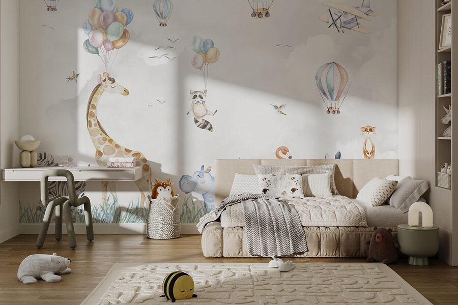 Transform a child’s room into a world of whimsy with “Hippo in the Grass” wall mural. Imagine a vibrant scene with playful animals, like a friendly hippo chilling in the grass while colorful hot air balloons float by. It’s not just decor; it’s a conversation starter! Kids will love spotting the adorable giraffe and cheeky raccoon, and parents will smile at the cheerful vibe. This mural adds a sprinkle of joy to any space, making it feel like a mini safari right at home. Who wouldn’t want their walls to tell a story? Perfect for sparking imagination!