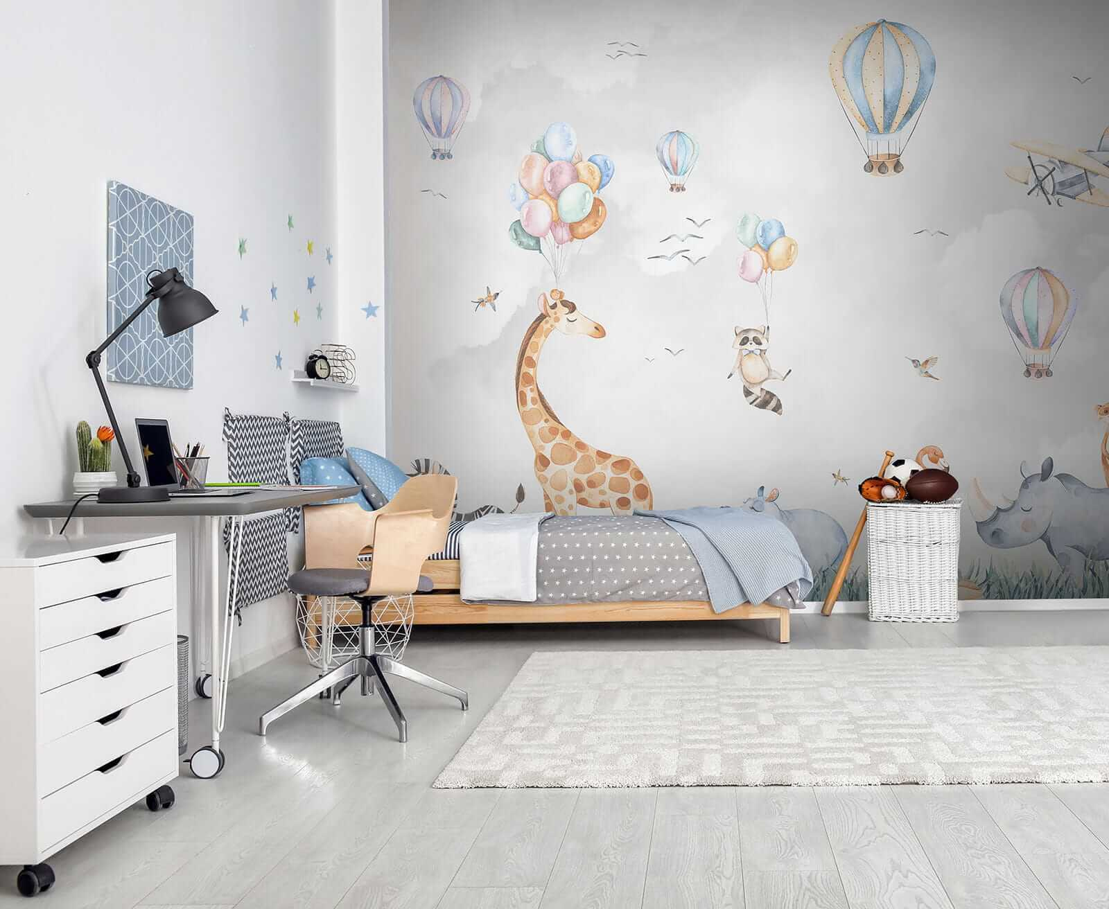 Transform a child’s room into a world of whimsy with “Hippo in the Grass” wall mural. Imagine a vibrant scene with playful animals, like a friendly hippo chilling in the grass while colorful hot air balloons float by. It’s not just decor; it’s a conversation starter! Kids will love spotting the adorable giraffe and cheeky raccoon, and parents will smile at the cheerful vibe. This mural adds a sprinkle of joy to any space, making it feel like a mini safari right at home. Who wouldn’t want their walls to tell a story? Perfect for sparking imagination!