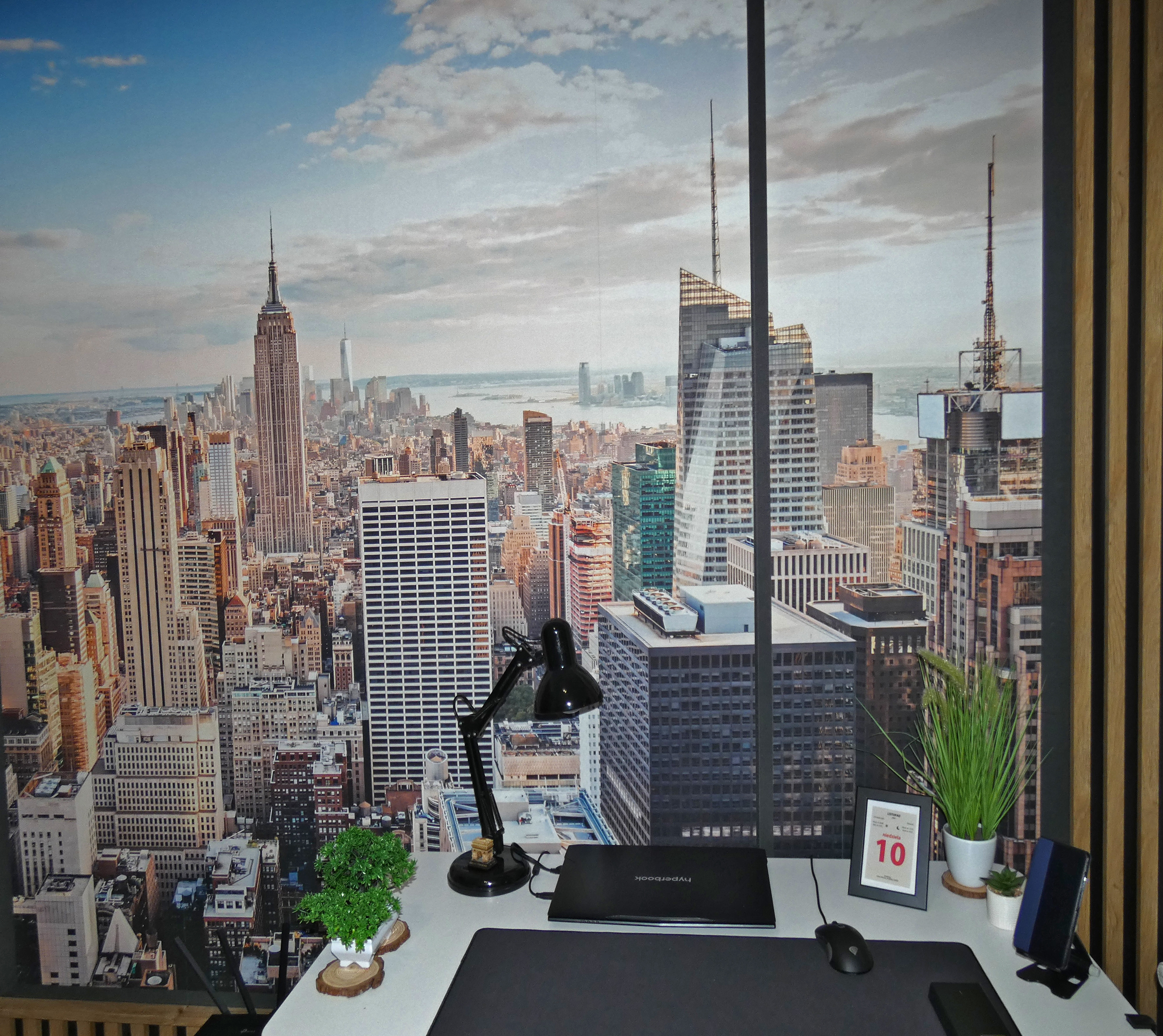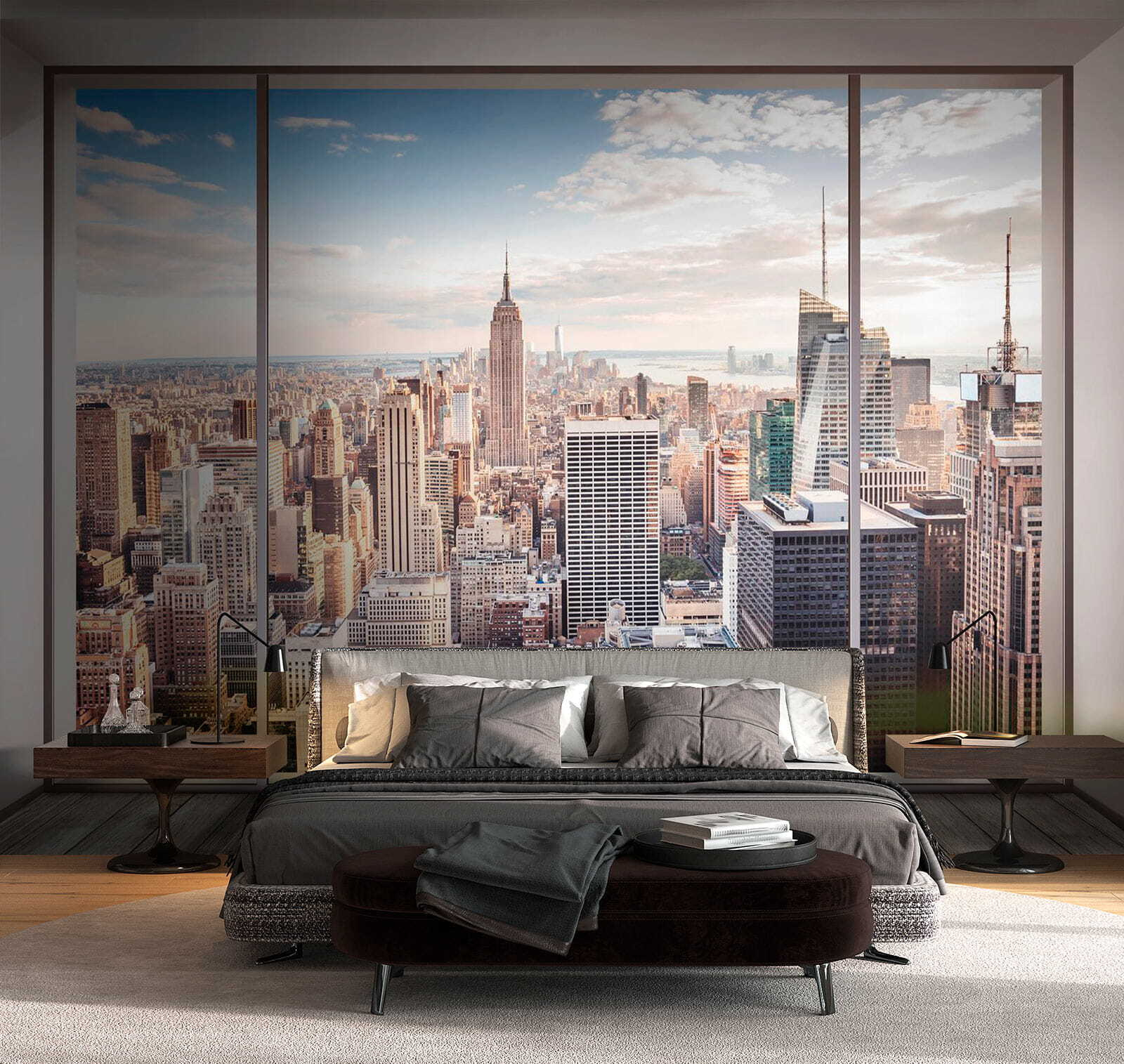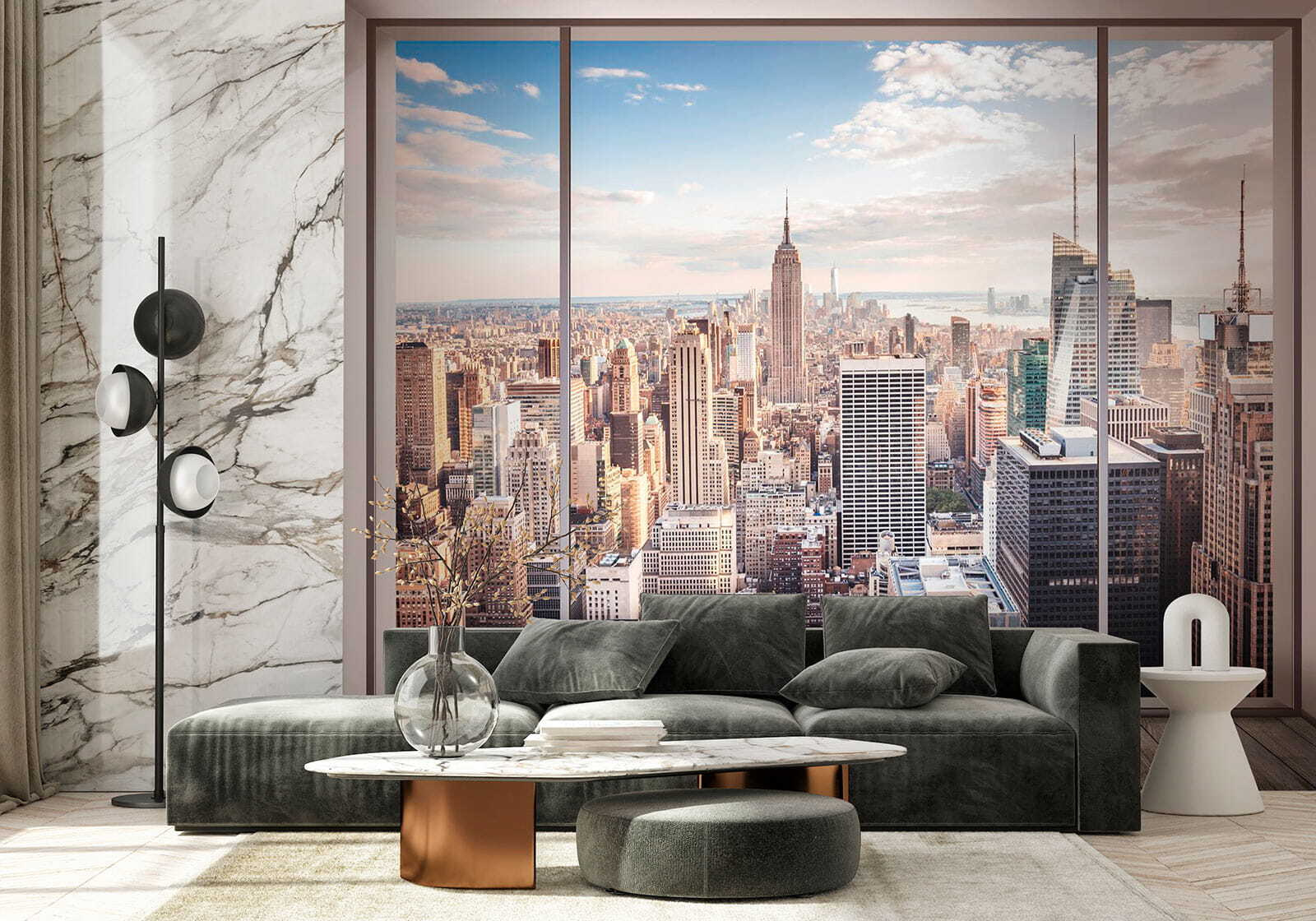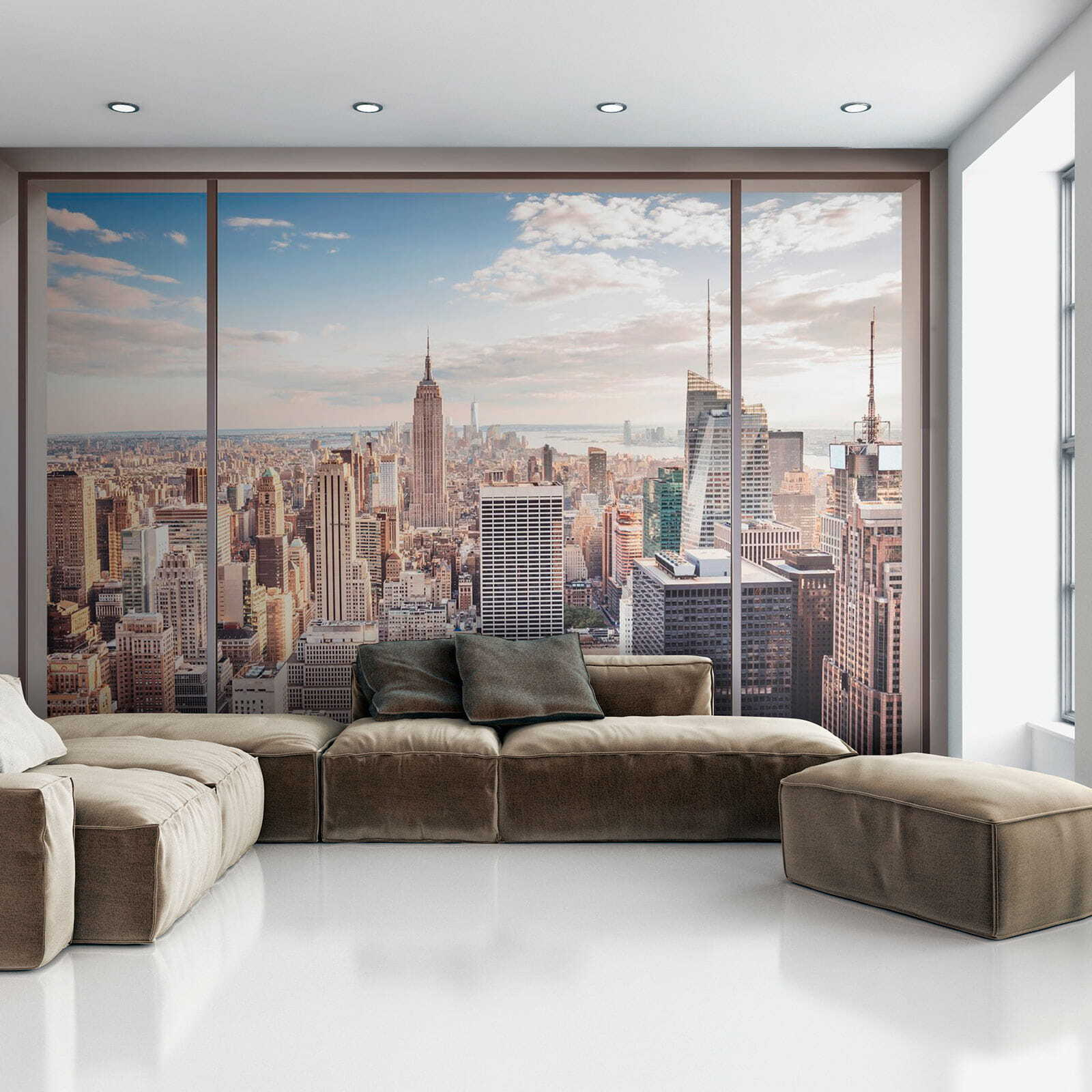 Transform your space with this stunning wall mural, “Skyline View through Large Window.” It’s like having a ticket to the city without the traffic. Imagine sipping your morning coffee, gazing out at that breathtaking skyline—hello, New York! The warm hues and intricate details make it feel alive, almost like the city’s pulse is right there in your room.
