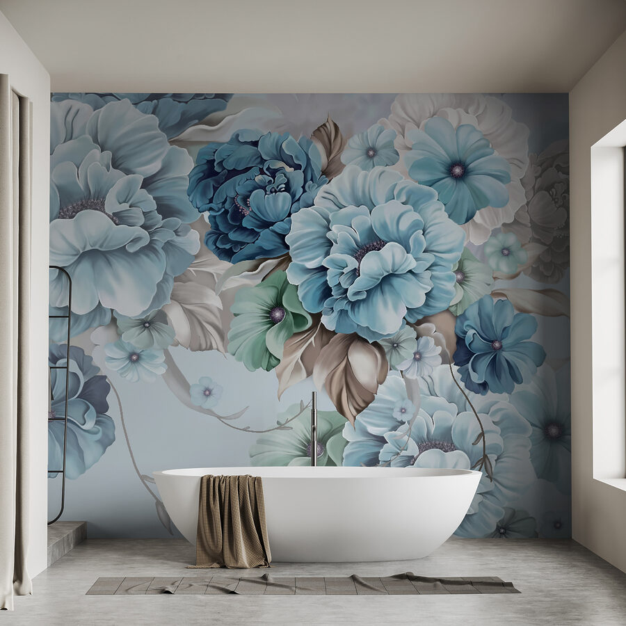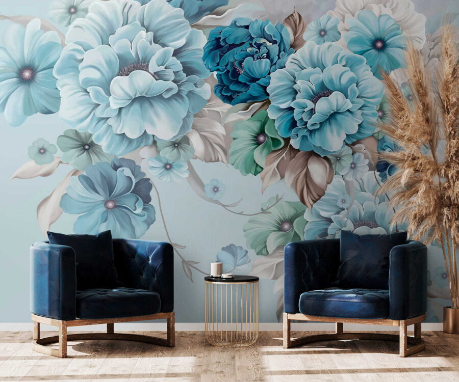 Transform any room into a serene retreat with the “Elegant Teal Blossoms in Soft Harmony” mural. These watercolor blooms effortlessly blend shades of teal and soft pastels, like a gentle breeze on a lazy Sunday morning. Imagine sinking into your couch, surrounded by these dreamy flowers, as they whisper peace and tranquility—no need for a garden when you’ve got this lush beauty on your walls!