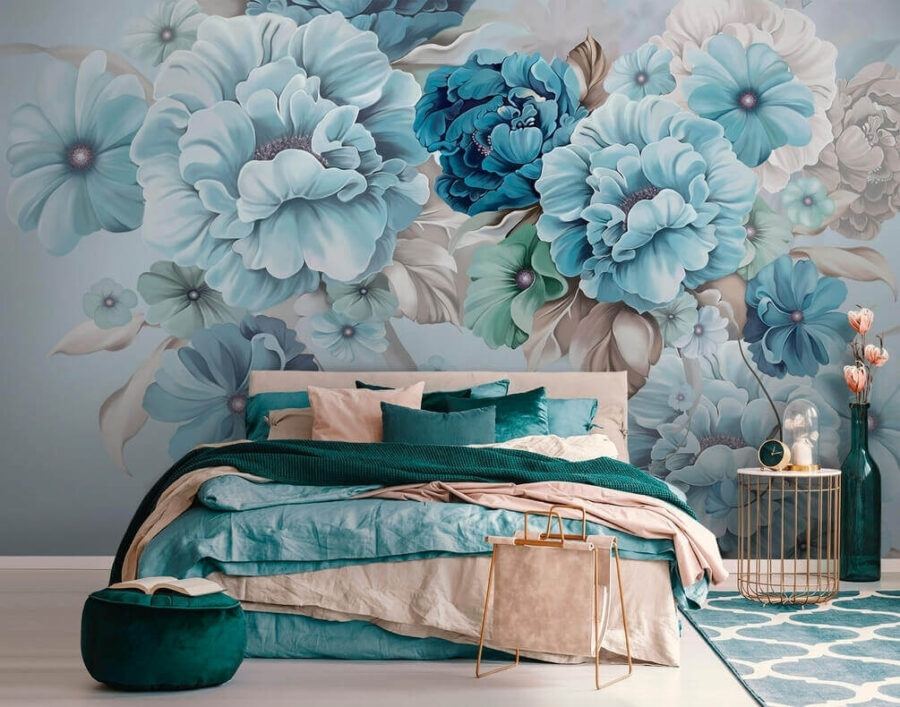2 reviews for Wall murals Elegant teal blossoms in soft harmony