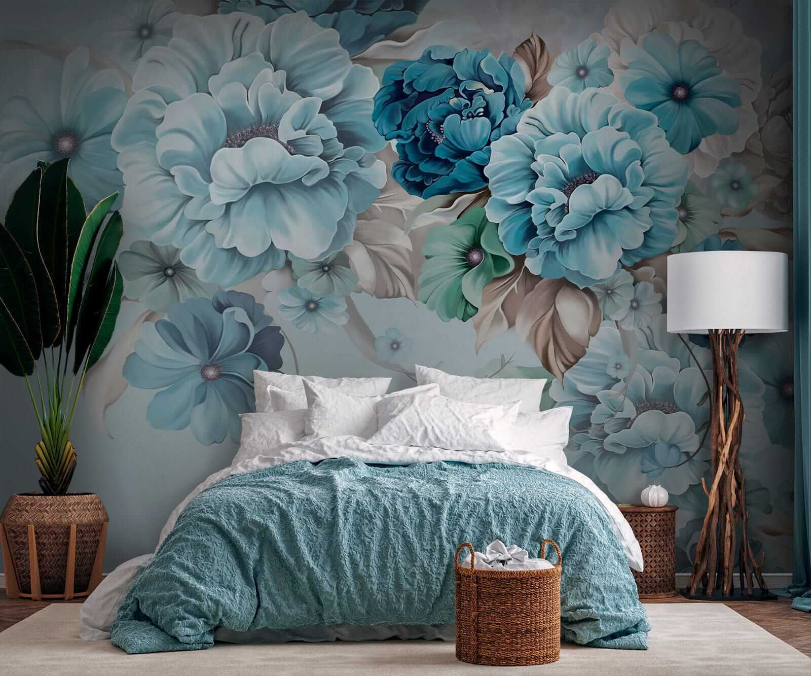 2 reviews for Wall murals Elegant teal blossoms in soft harmony