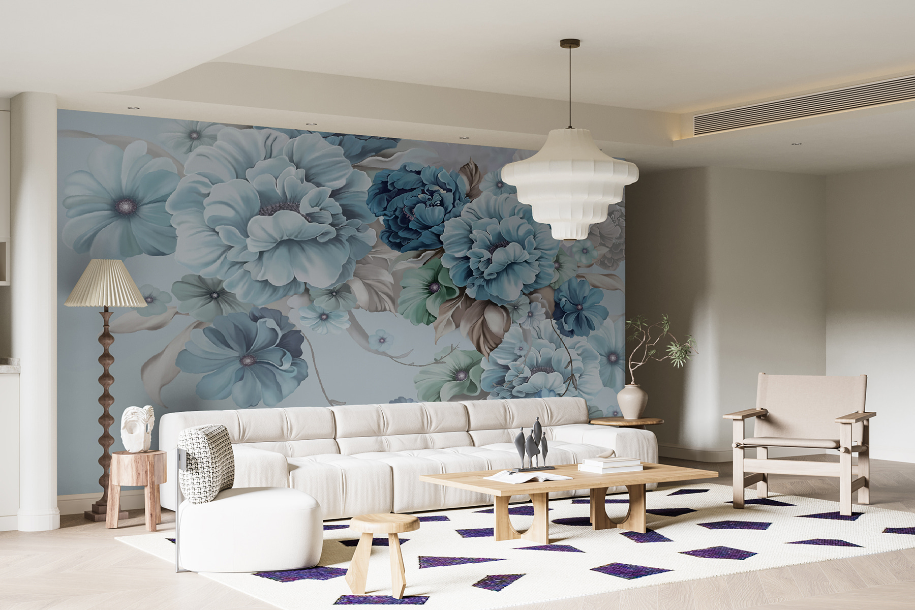Transform any room into a serene retreat with the “Elegant Teal Blossoms in Soft Harmony” mural. These watercolor blooms effortlessly blend shades of teal and soft pastels, like a gentle breeze on a lazy Sunday morning. Imagine sinking into your couch, surrounded by these dreamy flowers, as they whisper peace and tranquility—no need for a garden when you’ve got this lush beauty on your walls!