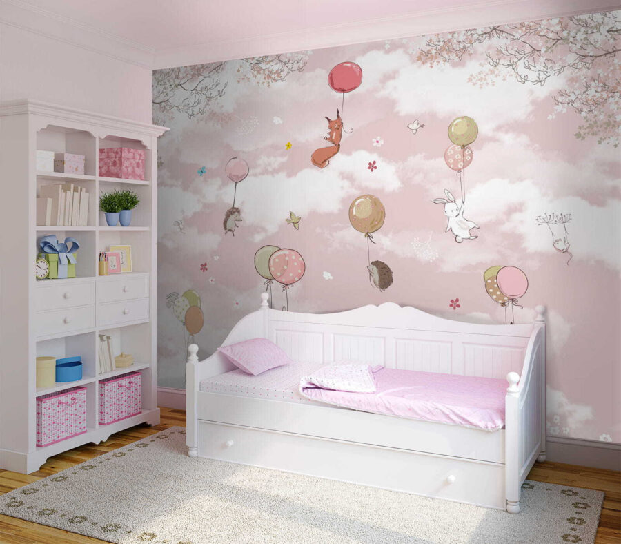 Transform any room into a whimsical wonderland with this delightful mural featuring adorable animals floating serenely with colorful balloons. Picture a curious fox, a hop-happy bunny, and their furry friends gently bobbing through fluffy clouds. It’s like a daydream you never want to wake up from! Whether it’s for a child’s room or someone forever young, this mural adds a pop of color and a sprinkle of joy to the space. Imagine the giggles and smiles as little ones gaze up at their new furry pals—who wouldn’t feel lighter than air? It’s warm, charming, and a little bit magical—all at once!