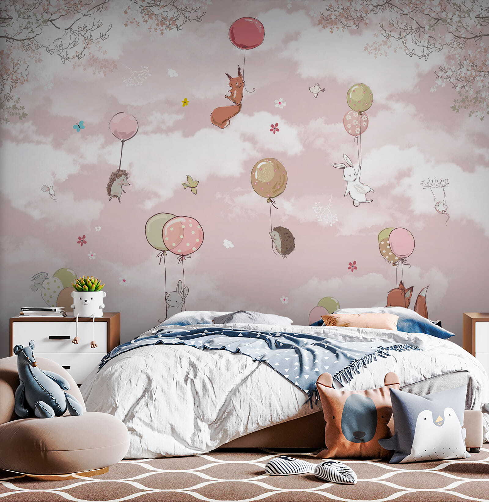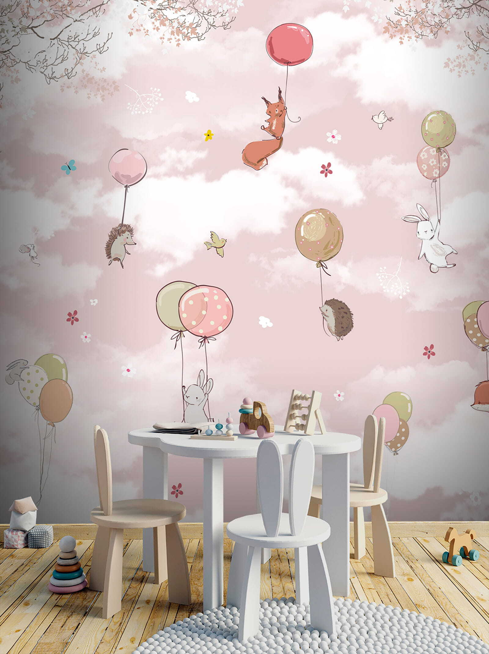 Transform any room into a whimsical wonderland with this delightful mural featuring adorable animals floating serenely with colorful balloons. Picture a curious fox, a hop-happy bunny, and their furry friends gently bobbing through fluffy clouds. It’s like a daydream you never want to wake up from! Whether it’s for a child’s room or someone forever young, this mural adds a pop of color and a sprinkle of joy to the space. Imagine the giggles and smiles as little ones gaze up at their new furry pals—who wouldn’t feel lighter than air? It’s warm, charming, and a little bit magical—all at once!
