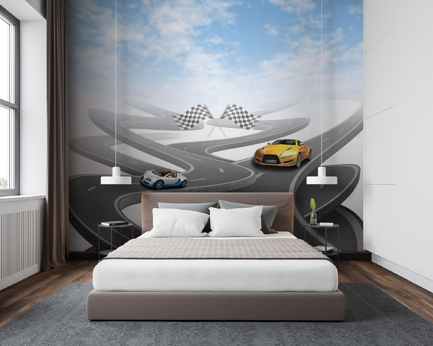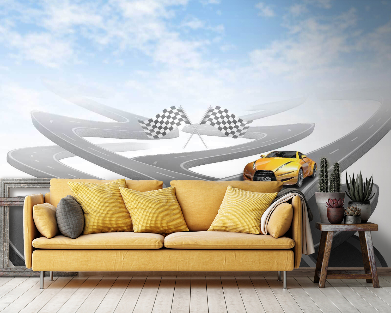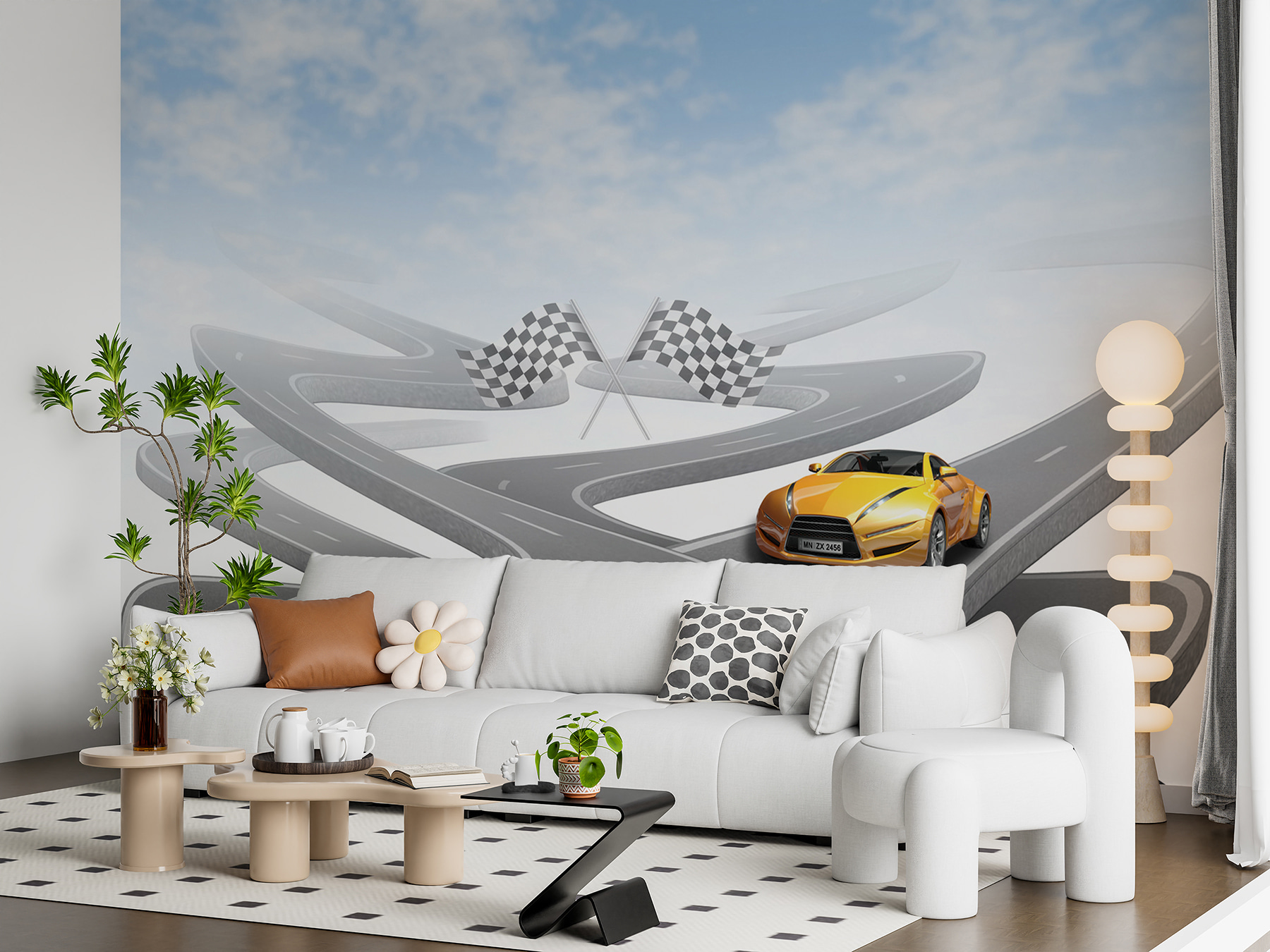 Rev up the charm in any room with this vibrant “Yellow Sports Car on a Road” mural. Perfect for young speedsters or anyone who just loves a bit of whimsy, it transforms walls into an exhilarating race track. Imagine the excitement—kids zooming around, visions of racing adventures in their eyes, while you can’t help but smile at their joy. The bright yellows and winding roads invite dreams of fast cars and sunny days. It’s more than just decor; it’s a ticket to a playful world. So, why not add a splash of fun and a dash of adventure to those walls? Your space deserves a little extra pedal-to-the-metal excitement!