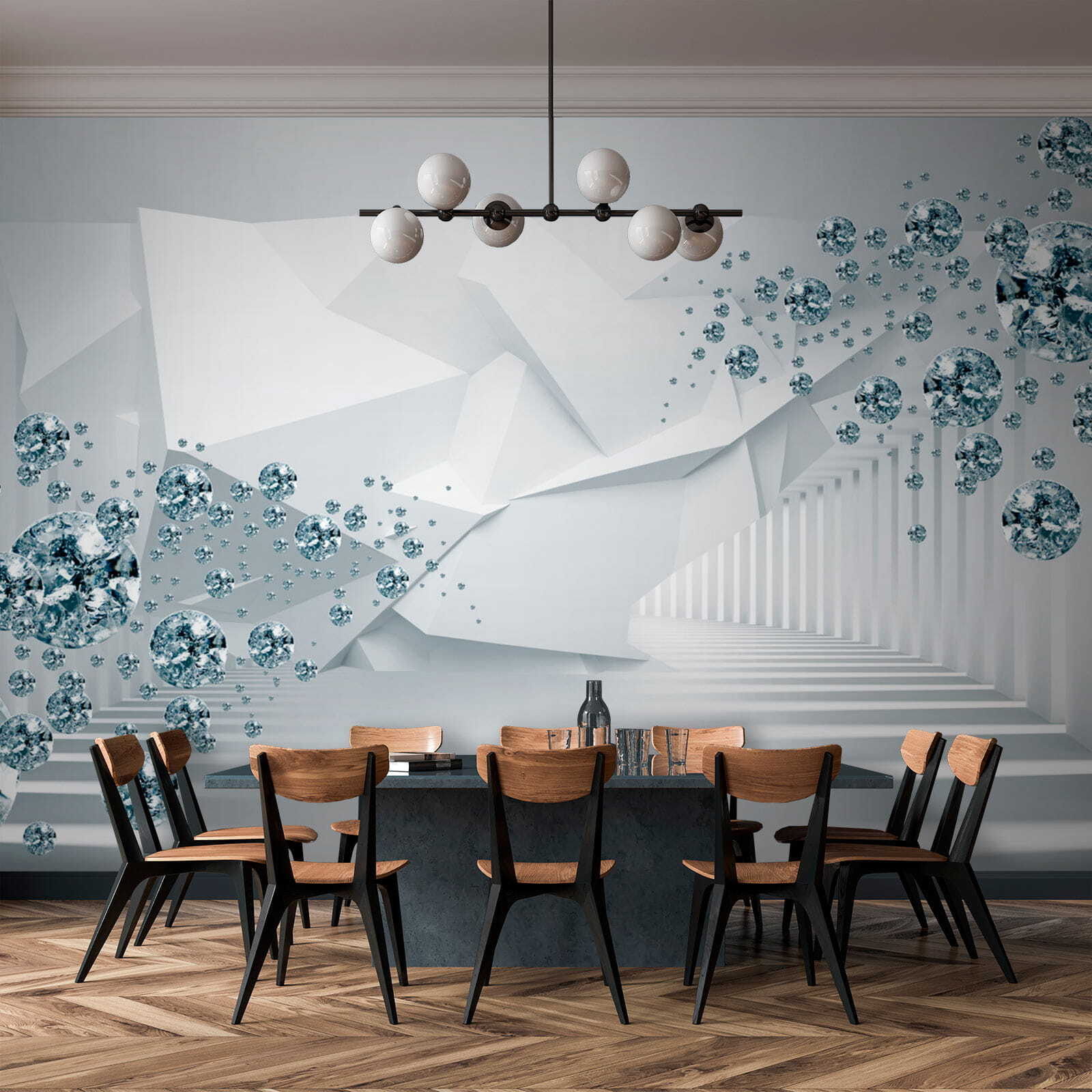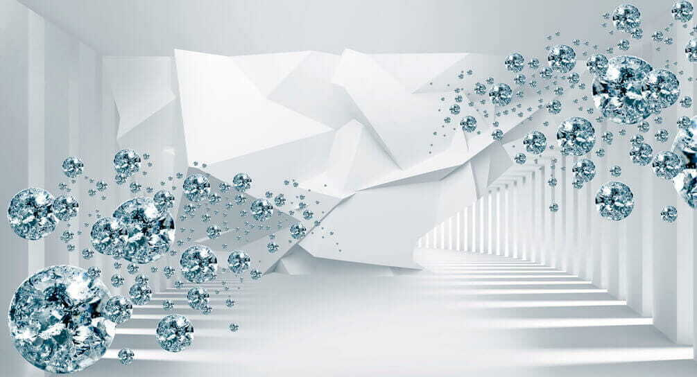 Wall murals Floating gems in a futuristic hallway. (SKU: u60340)