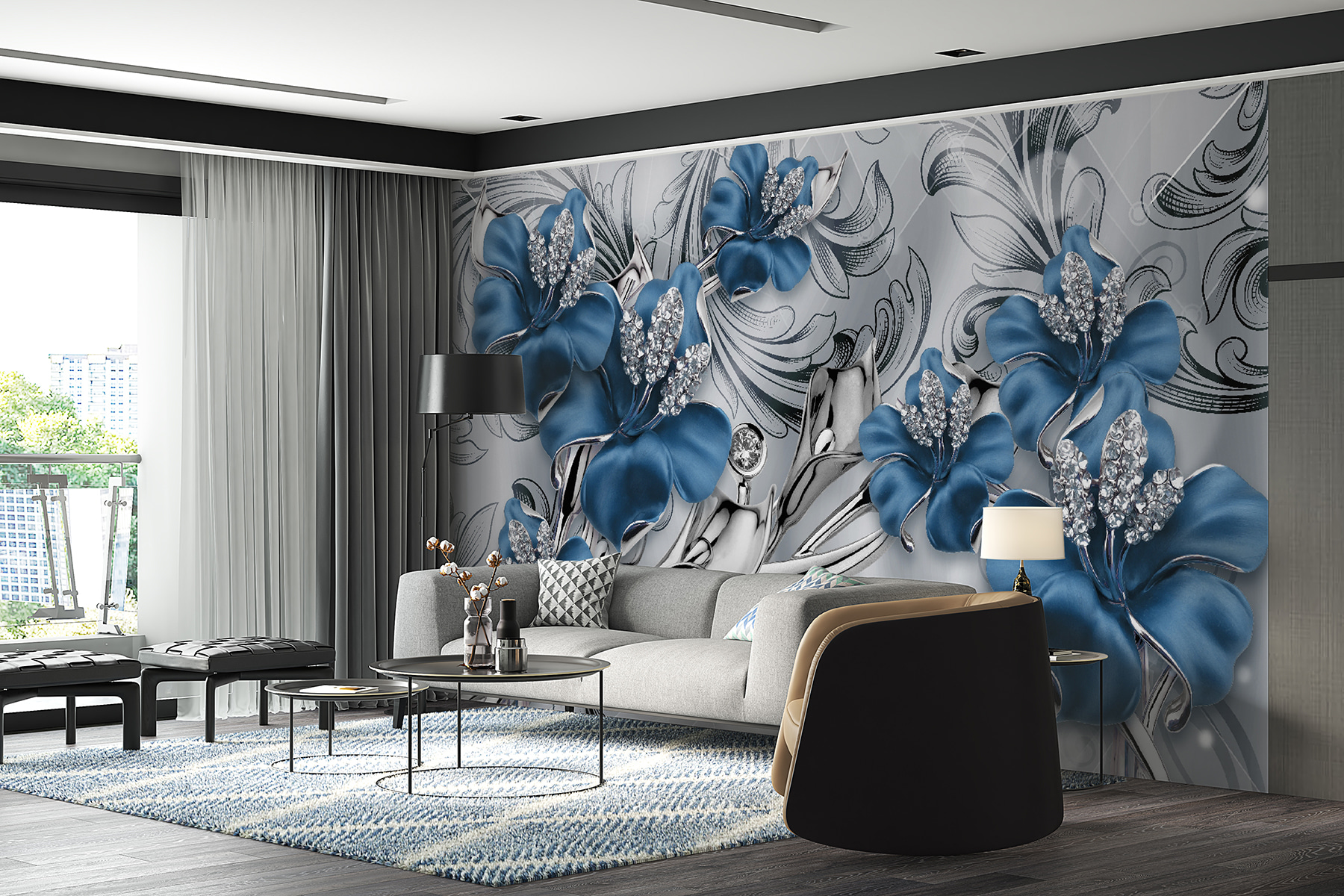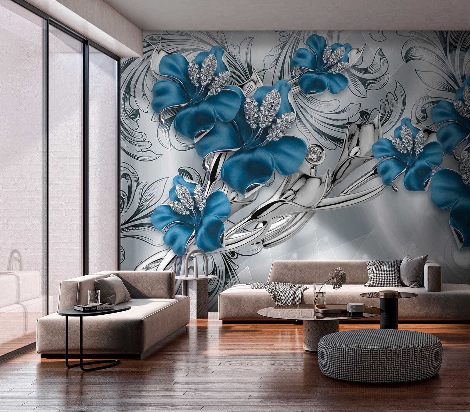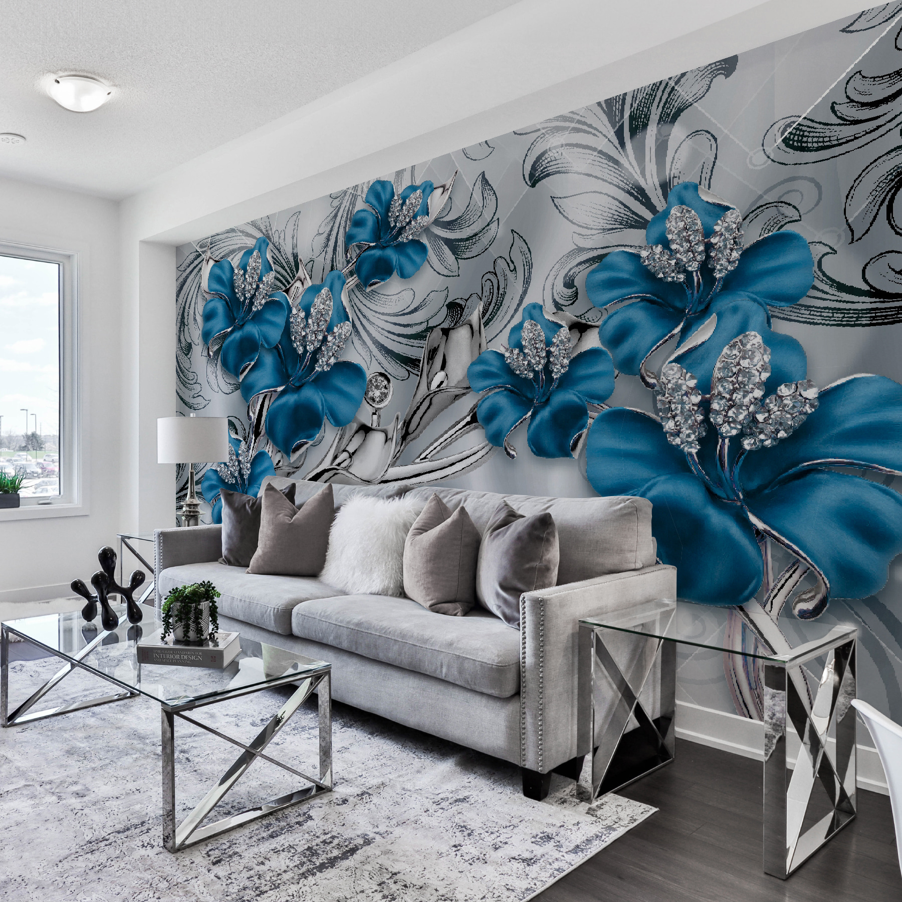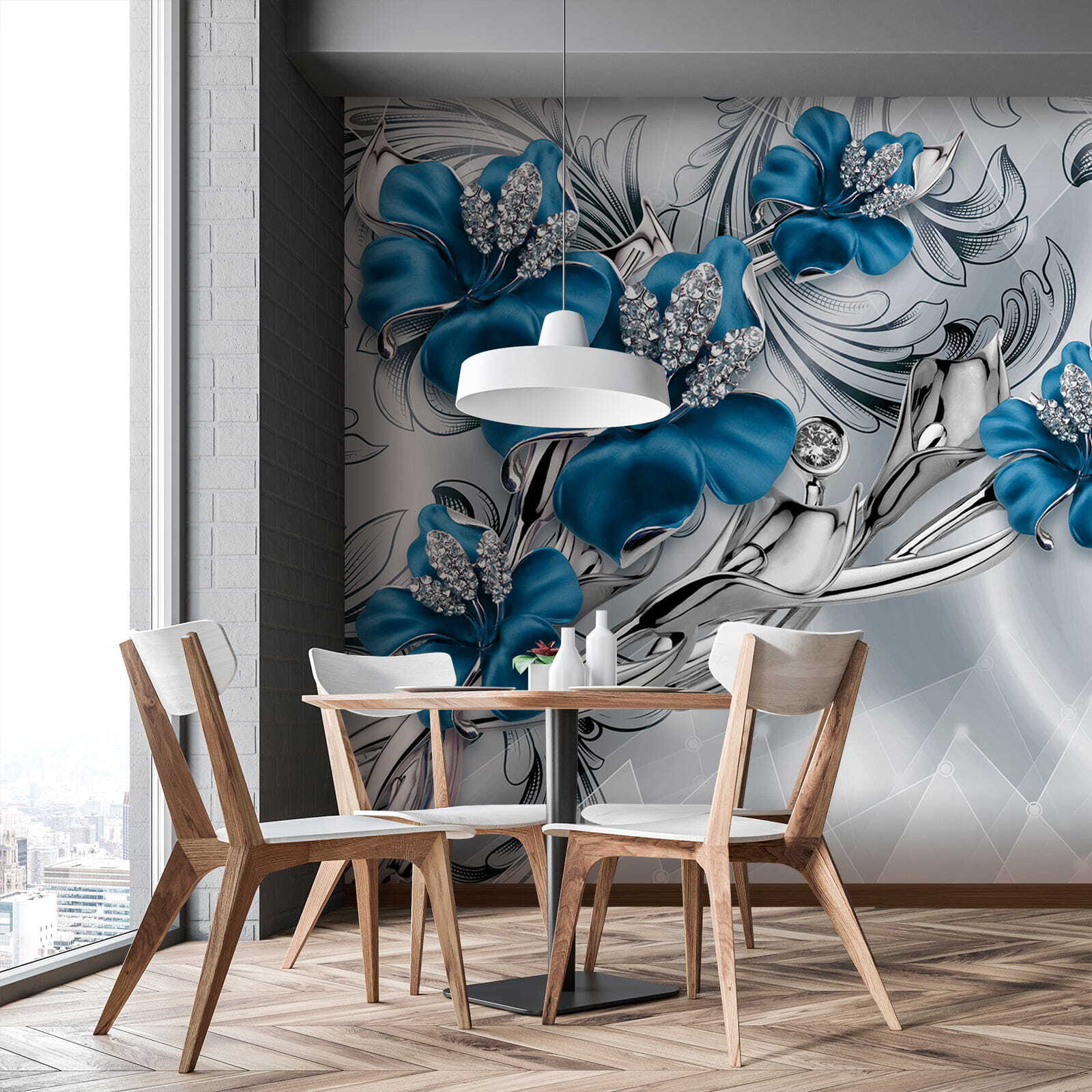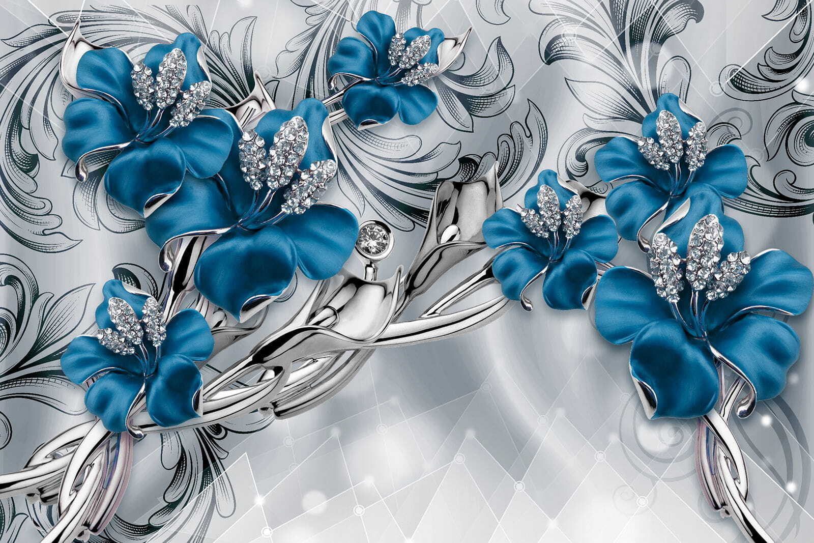 2 reviews for Wall murals Ornate blue flowers with crystals