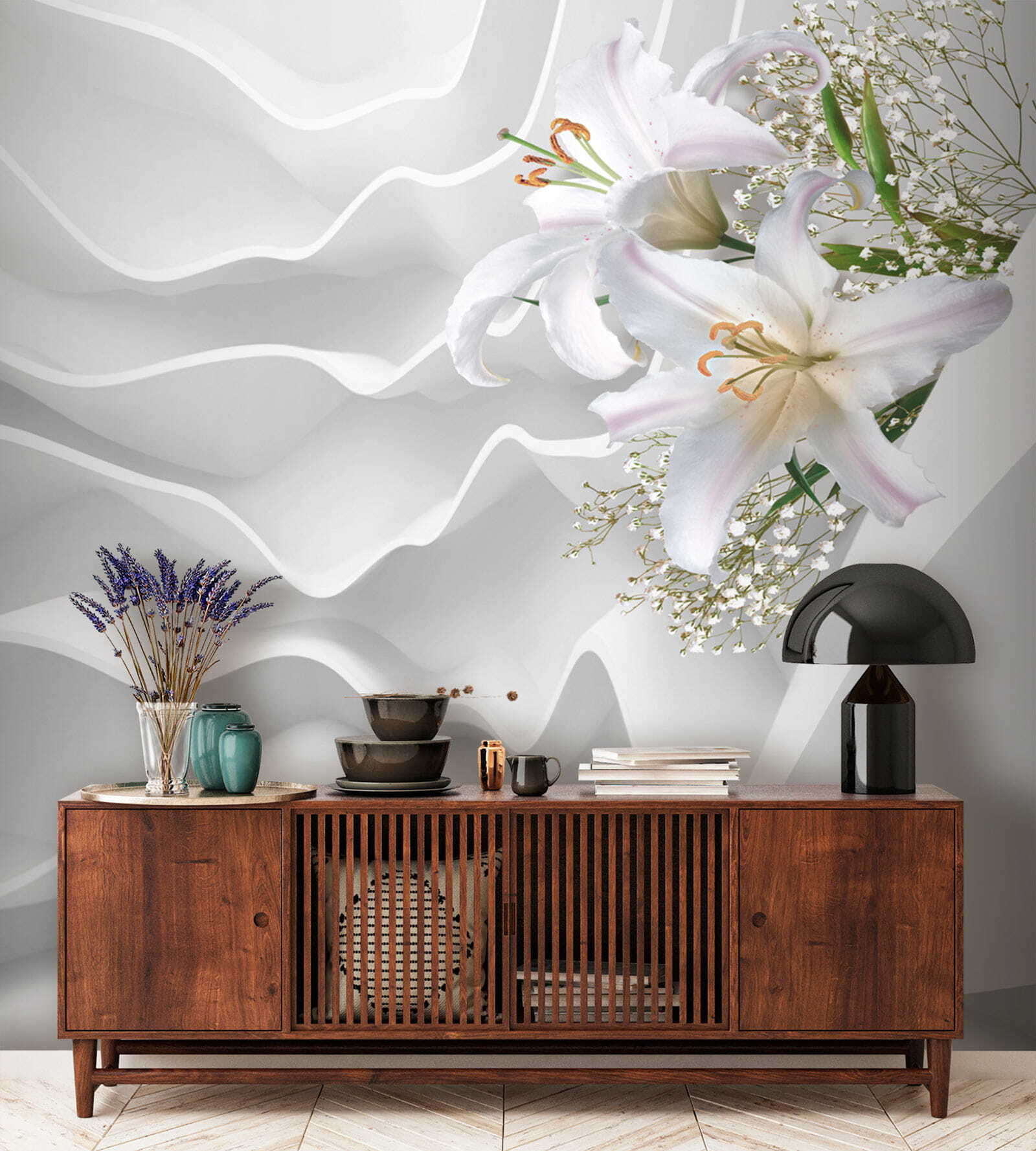Transform any room into a serene oasis with the stunning “Lilies against wavy white pattern” wall mural. Picture this: you step inside, and bam! Those delicate white lilies practically whisper elegance. The soft, textured waves behind them create a calming vibe that almost feels like a gentle breeze. Imagine enjoying a quiet morning coffee, with this mural as the backdrop—it’s like nature invited itself indoors! Perfect for living rooms, bedrooms, or even a cozy reading nook, this mural brings a fresh, airy feel that’ll make guests take a second look. Just don’t be surprised if they start asking where to get their own slice of floral paradise!