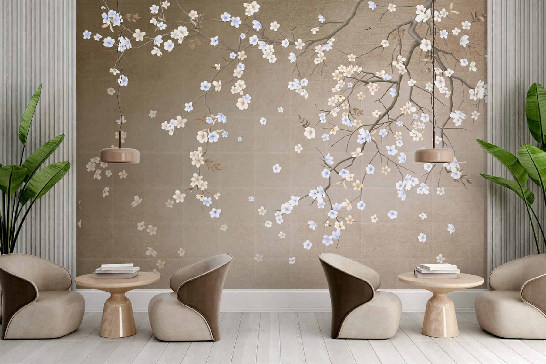 Transform your space with the “Delicate Blossoms on Elegant Branches” mural, a gorgeous piece that feels like a stroll through a serene garden. Imagine waking up to soft blooms cascading across your walls—those gentle blues and creamy whites creating a relaxing vibe that’s just… inviting. It’s like nature decided to join your living room! Perfect for a cozy reading nook or an inspiring workspace, this mural whispers tranquility. It’s got that perfect balance of elegance and warmth, making it a lovely backdrop for those coffee chats or Netflix binges. Who needs a garden when you can have this beauty right at home?