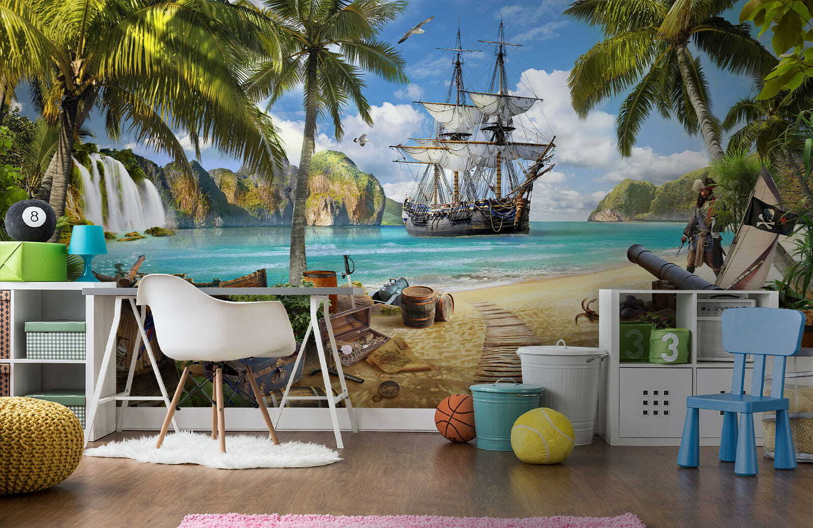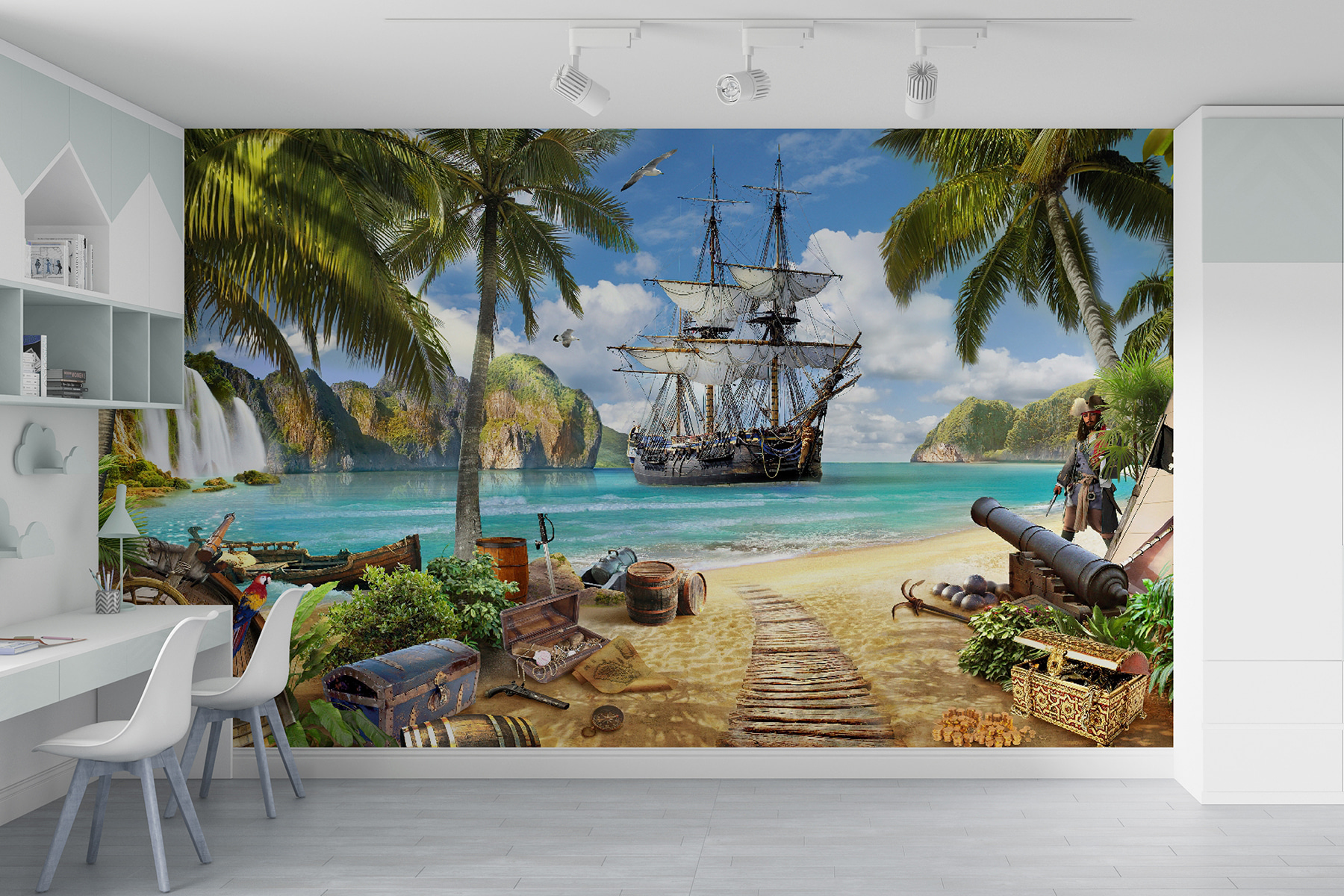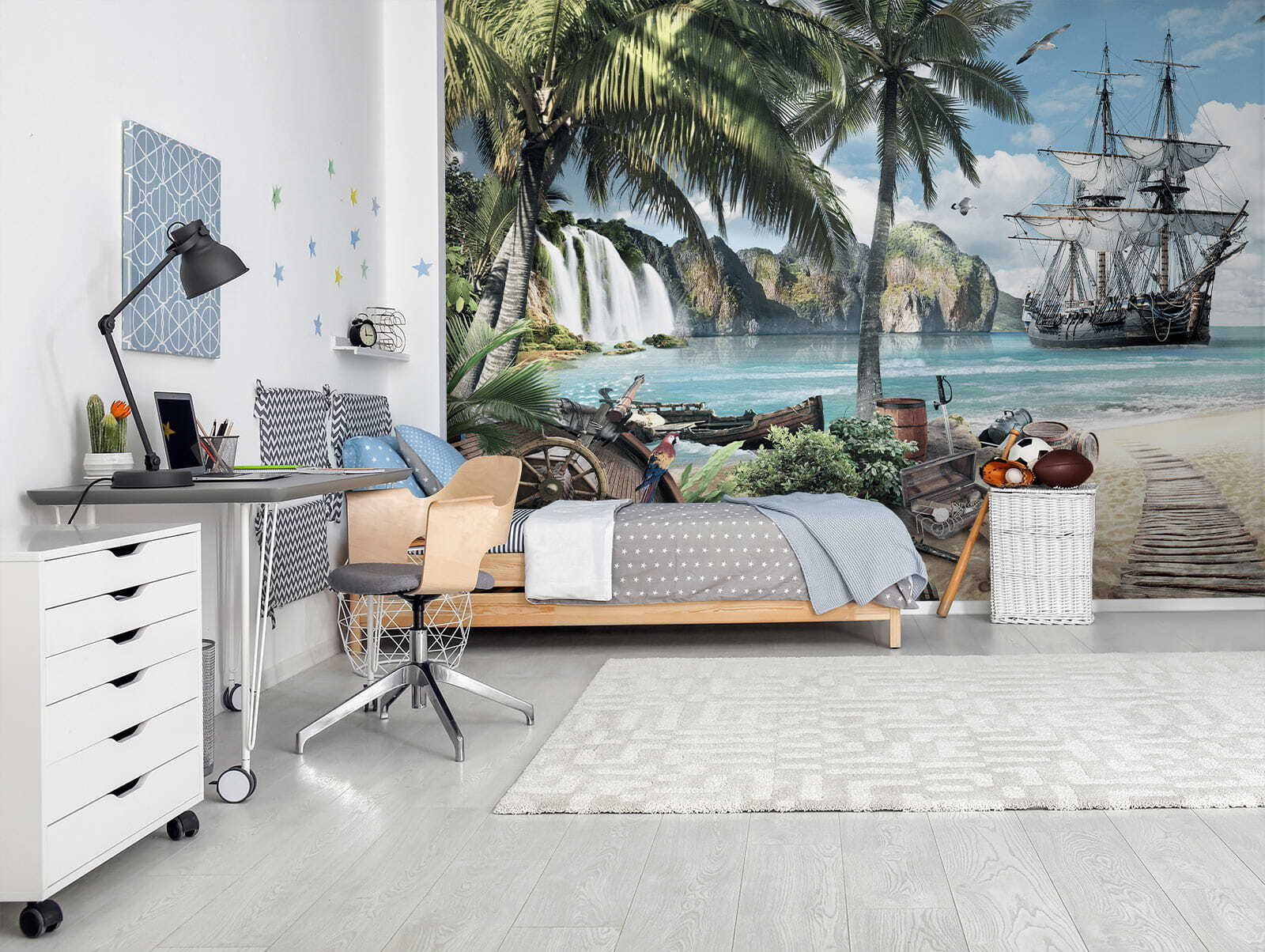 1 review for Wall murals Pirate ship anchored by tropical paradise
