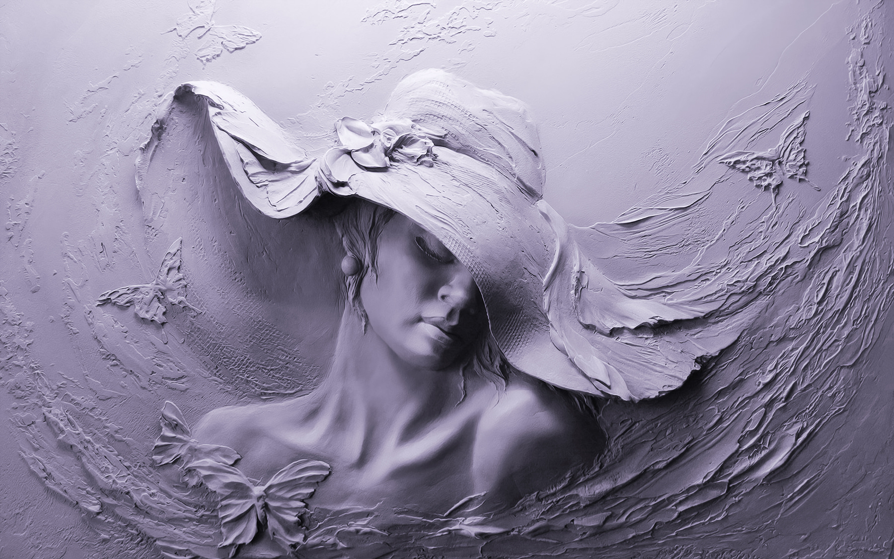 Transform any space with this stunning wall mural, “Sculpture of a Woman in a Hat.” It’s like inviting a serene, stylish friend into your home. Picture it in your living room, catching your eye every time you walk by. The graceful flow of her hat and those delicate butterflies whisper a story of gentle breezes and sunny afternoons. Imagine cozy evenings spent with a book, the mural offering a comforting presence. With its unique texture and soft monochrome tones, it adds a touch of sophistication—perfect for lifting the vibe of any room. Who knew wall art could evoke such warm feelings?