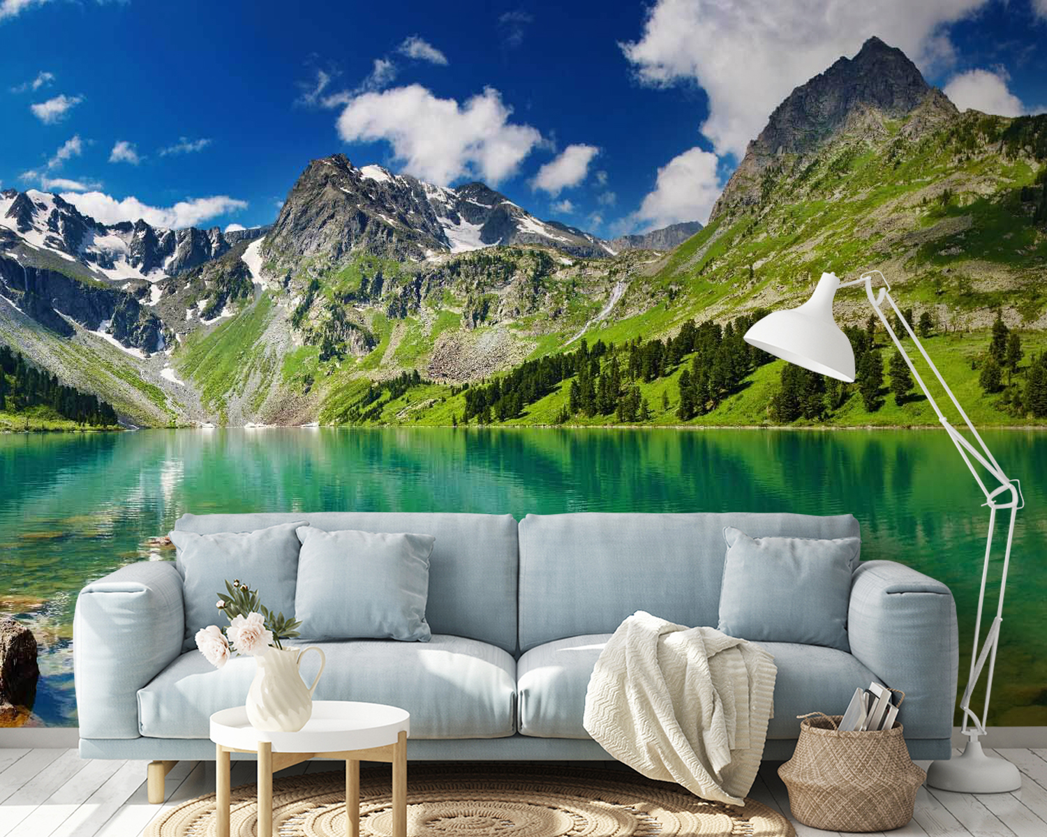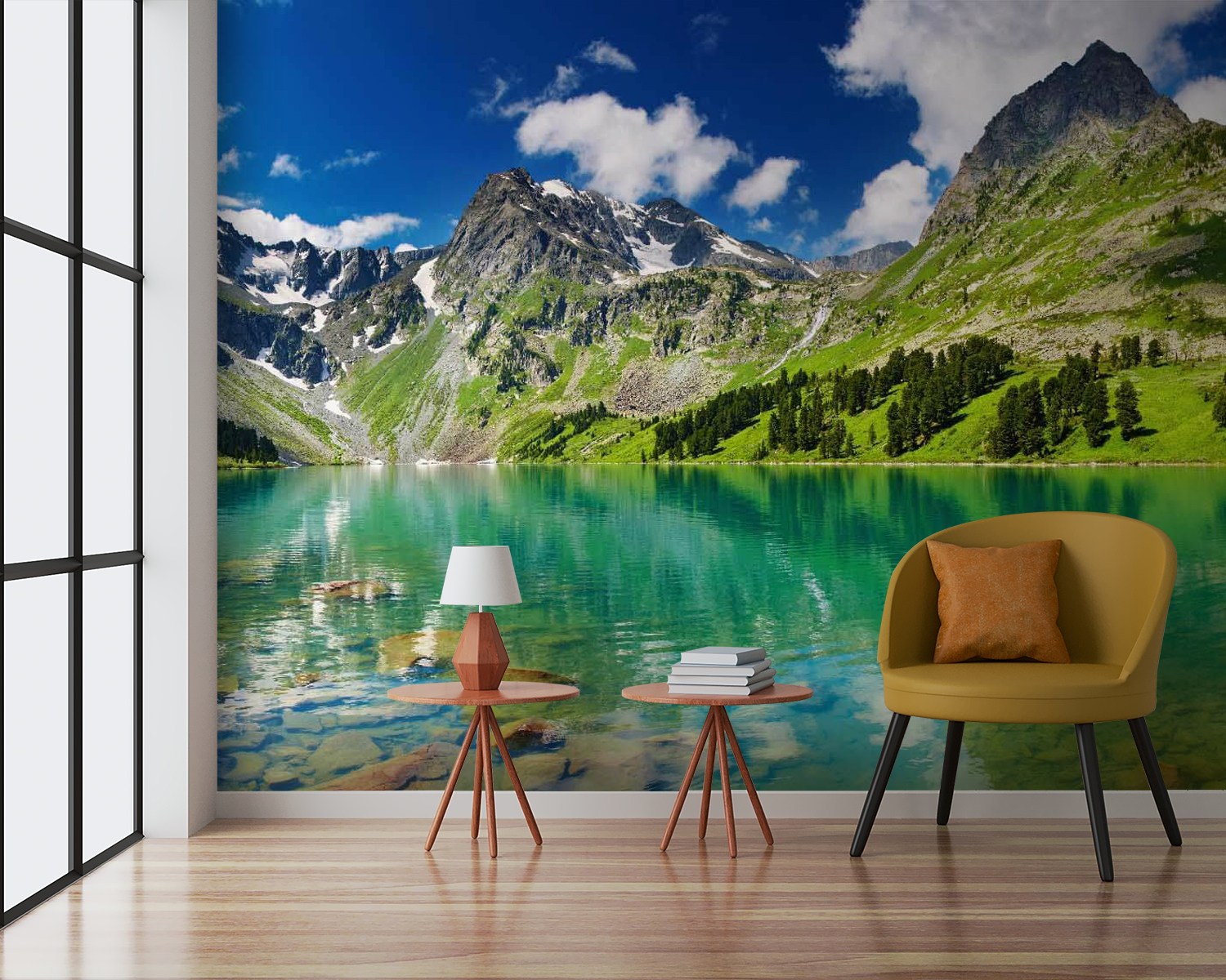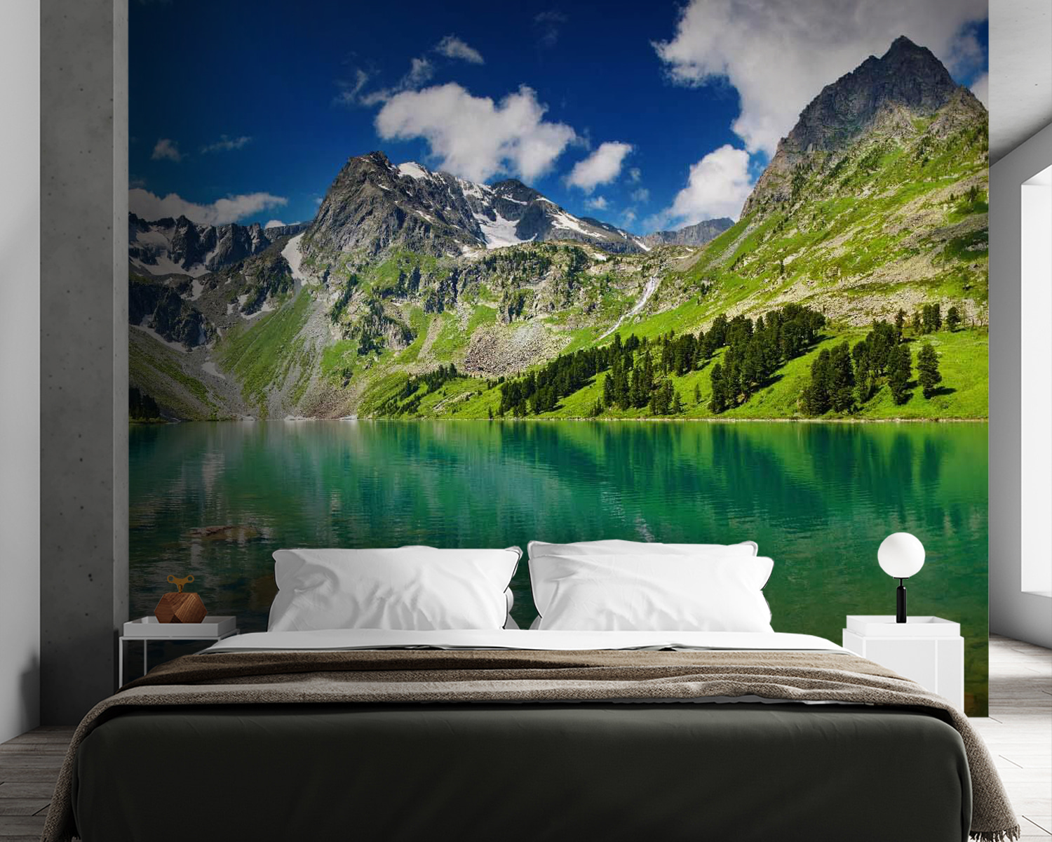 Transform any room into a serene escape with this stunning wall mural featuring a large rock surrounded by tranquil water. Imagine stepping into a peaceful oasis every time you walk through the door. The vibrant greens of the mountains meet the soft blues of the lake, creating a delightful contrast that can uplift moods and spark daydreams. It’s like bringing a slice of nature indoors without the hiking boots. Friends will wonder if you secretly took a trip to the great outdoors. Perfect for a living room, office, or cozy reading nook!