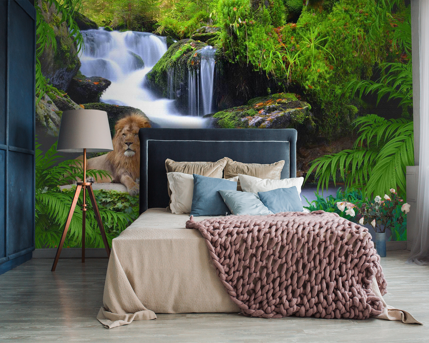 Transform your space with the stunning “Wall Murals Rock Surrounded by Ferns.” Imagine a cozy corner of your home, bringing a slice of nature right inside. There’s a majestic lion lounging in a lush oasis—a real showstopper, right? The soft sound of the waterfall and the vibrant greenery will make anyone feel at peace. It’s like you’ve got a mini rainforest going on! Friends will think you’re living in a fancy lodge. Plus, this mural could spark some wild tales—who wouldn’t want to tell a story or two about that lion? Perfect for a living room or any spot that could use a touch of nature’s charm!