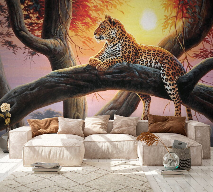 Transform any space into a wild getaway with this stunning mural featuring a leopard lounging majestically on a tree branch at sunset. Just imagine walking into a room that instantly feels more vibrant and alive—this mural does just that! The warm hues of the sunset mixed with the leopard’s striking spots create a relaxing yet adventurous vibe. It’s perfect for sparking conversations or even daydreams of safaris. Each glance can whisk you away on an imaginative escape, making it feel like nature is right at home. Plus, it’s a great reminder to take it easy and enjoy life—just like the leopard!
