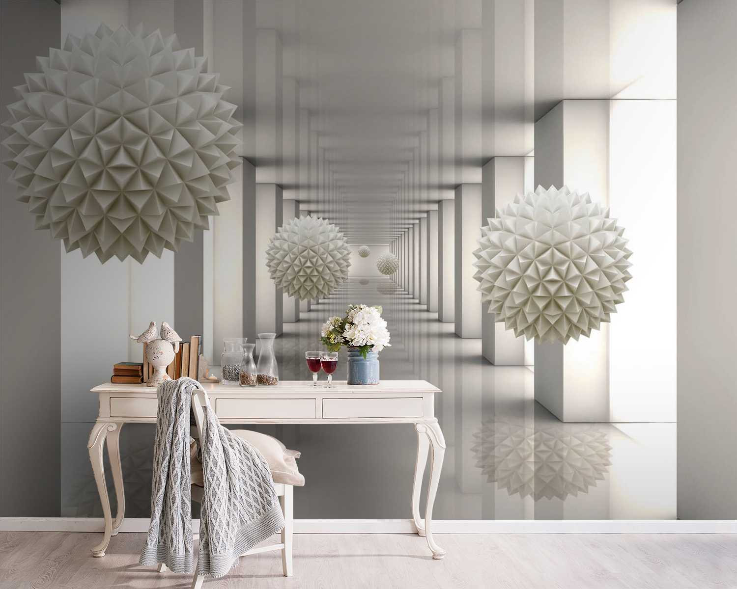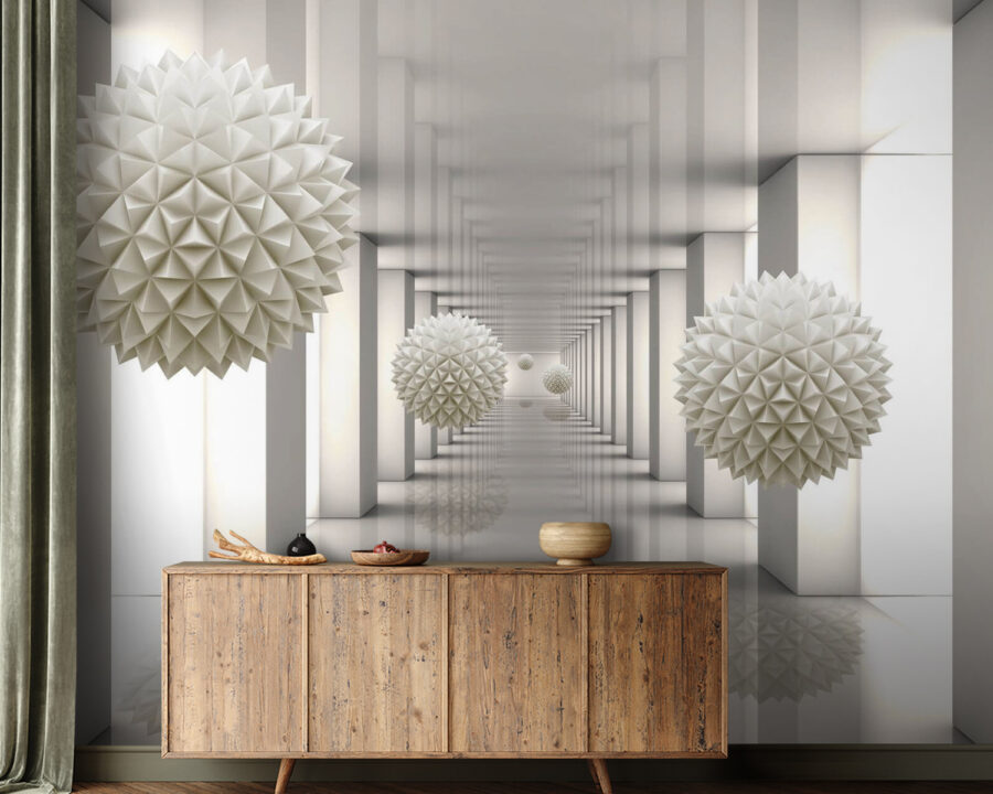 Transform any space into a playful yet sophisticated haven with the “Wall Murals White Sphere with Triangles.” Imagine walking into a room where sleek, geometric shapes dance along the walls, making everything feel just a little more dynamic. It’s like stepping into a futuristic dream! This mural’s soft whites and sharp angles create visual intrigue—perfect for sparking conversations or simply admiring over your morning coffee.