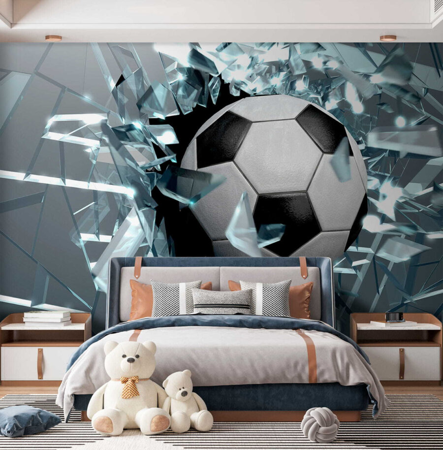 Bring a burst of energy to any space with this stunning wall mural, “Breaking Through with Powerful Impact.” Perfect for kids and the young-at-heart, it features a soccer ball breaking through a wall, just like that epic moment when your favorite team scores the winning goal. Imagine the excitement—it’s like having your own slice of a stadium right at home! Ideal for a playroom or a sports-themed area, this mural doesn’t just decorate; it inspires. Kids will feel like they can conquer anything, one kick at a time. Talk about motivation!