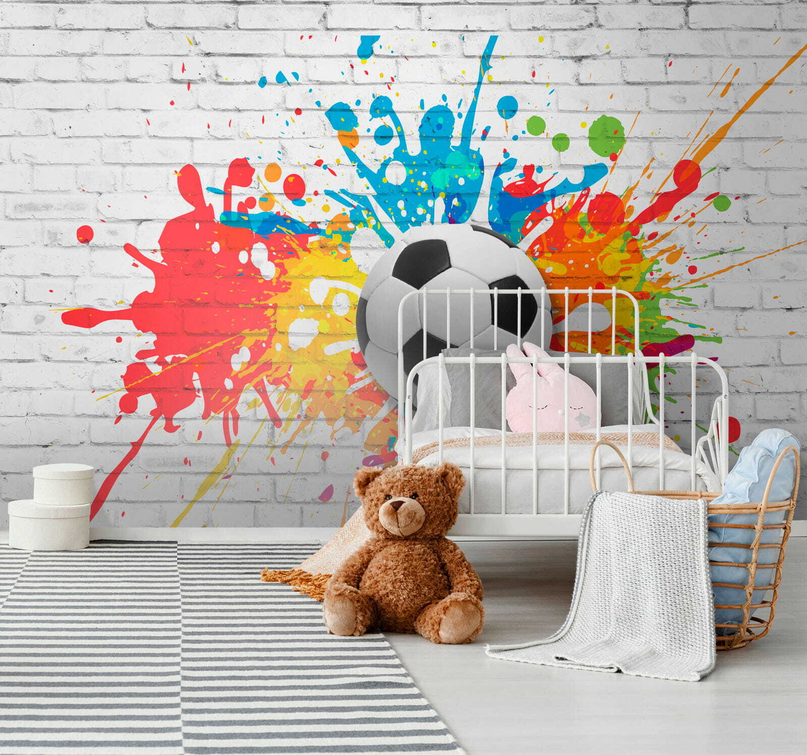 Brighten up any space with this lively wall mural featuring a playful black and white soccer ball splashed against a vibrant backdrop. It’s like your room just kicked off a celebration! Perfect for kids or those young at heart, this mural adds a fun twist to any wall. Imagine a birthday party where little ones are laughing and pretending to score goals right in your living room. The colorful paint splatters bring energy and joy, making every day feel like game day. Plus, who doesn’t love a little cheeky art? It’s got that delightful mix of sportiness and style that transforms a plain wall into a piece of art that invites smiles and maybe even a little dancing.