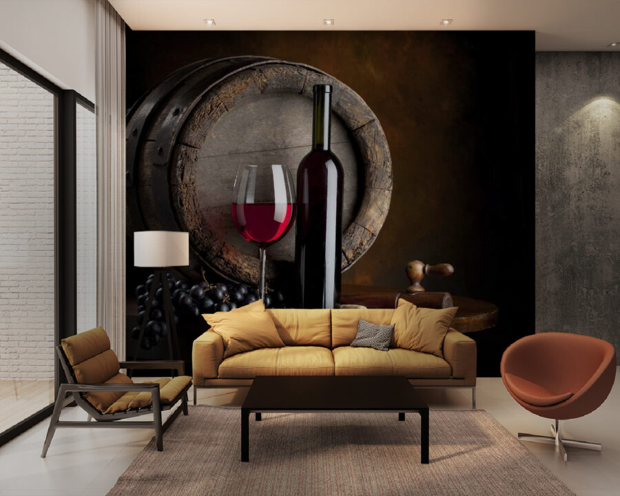 Transform your space with this charming mural of a wine bottle and glass perched on a rustic table. It’s like inviting a cozy little bistro right into your home. Picture this: friends gathering around, laughter spilling out as the rich burgundy wine catches the light. The subtle glow of the glass adds warmth, while the wooden barrel whispers stories of vineyards far away. It’s not just decor; it’s an atmosphere. Perfect for kitchens, dining rooms, or anywhere that could use a splash of sophistication. Who wouldn’t feel inspired to pop open a bottle or two?