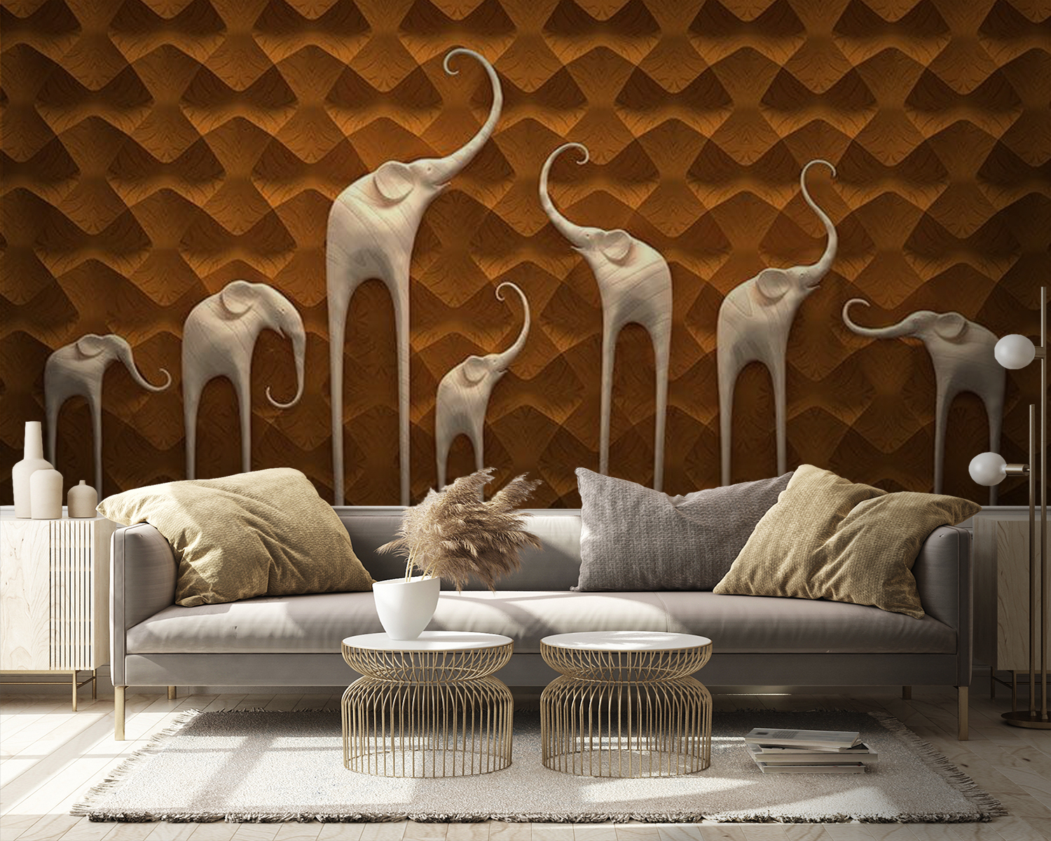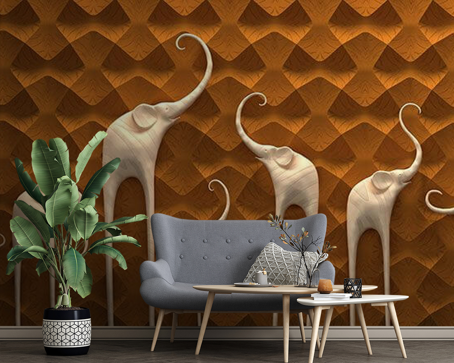 Transform any space with this enchanting wall mural featuring a delightful parade of elephants. These gentle giants, rendered in an artistic twist, will bring a sense of whimsy and warmth to your home. Imagine entering a room and feeling like you’ve stepped into a serene safari, where the only sounds are the soft rustle of leaves and the distant trumpeting of elephants. Perfect for a child’s room or a cozy living area, this mural sparks imagination and becomes an instant conversation starter. Each elephant has its unique character, almost like they’re sharing stories from their adventures. Whether it’s a relaxing afternoon with a book or a lively gathering with friends, this mural sets a playful yet elegant tone. Get ready for smiles, nostalgia, and maybe a few whimsical daydreams about wandering through the wild!