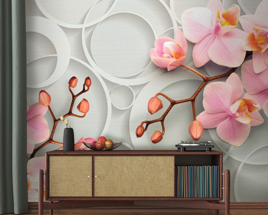 Transform your space with the “Soft Blooms Against a Circular Backdrop” mural. Imagine stepping into a room where delicate, pink orchids dance against a gentle backdrop of whimsical circles—like nature and art decided to throw a cozy little party. The soft hues and elegant design create an atmosphere that feels light and uplifting, perfect for those lazy Sunday mornings or sipping coffee while reading a good book. Who doesn’t love a bit of floral charm to brighten up the day? It’s more than decor; it’s a mood. Just picture how it’d make your friends do a double-take when they walk in—guaranteed compliments! Embrace a touch of nature’s beauty right on your walls and watch your home blossom with style.