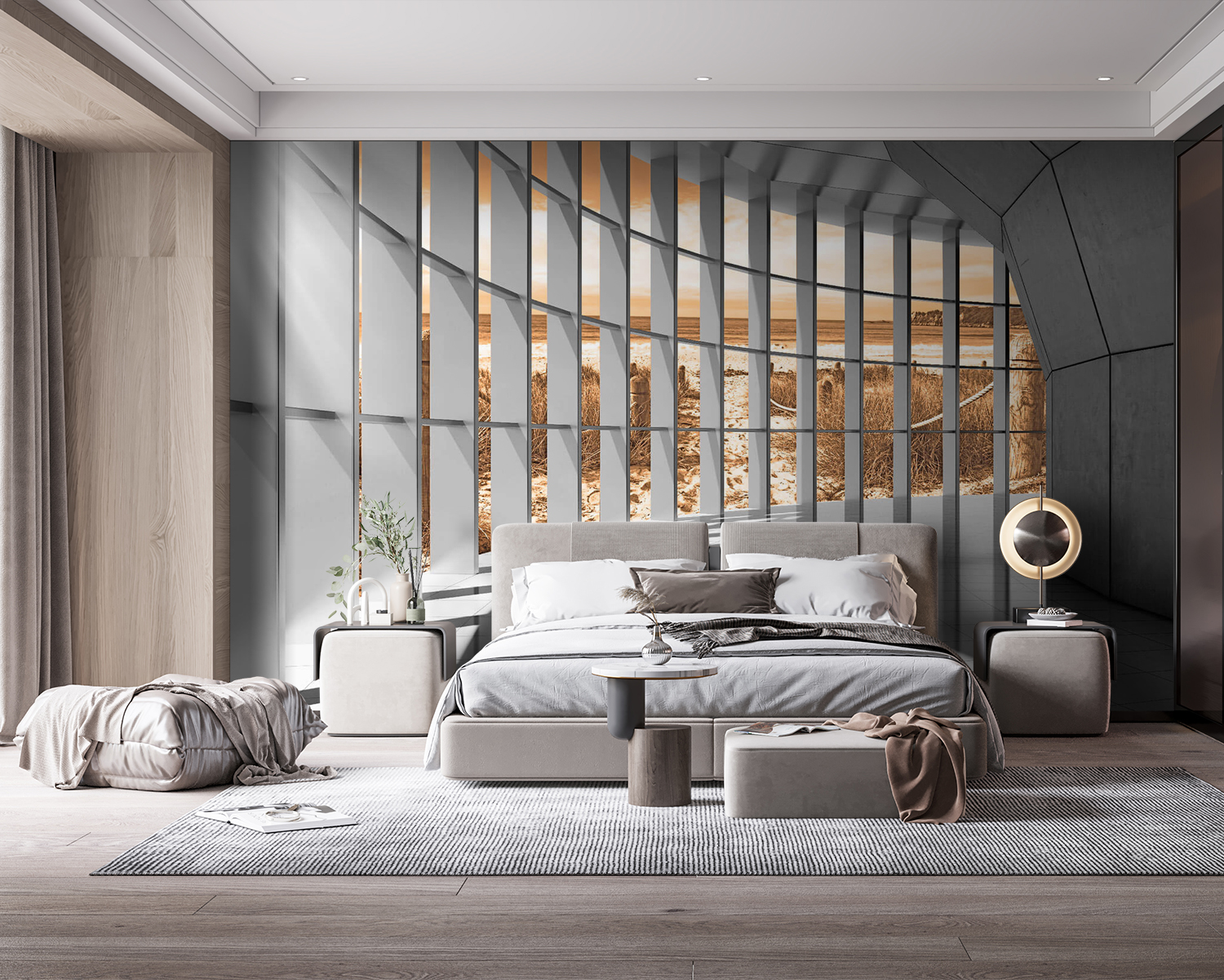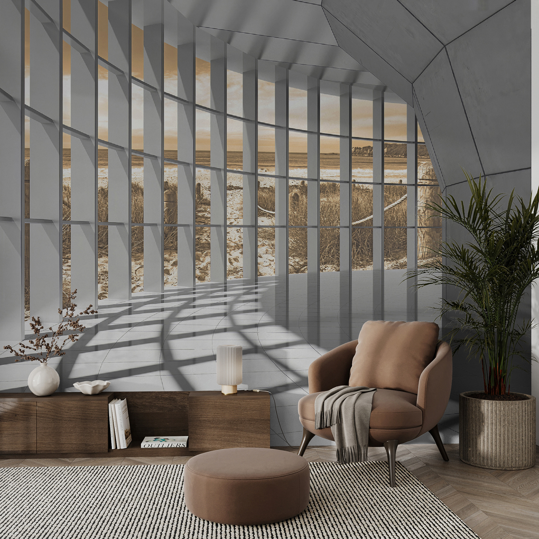 Imagine walking into a room that feels like it stretches into the horizon. This wall mural is all about that dreamy vibe, with its bright, airy windows creating a visual escape. It’s like inviting the great outdoors indoors—seriously, who needs a vacation when this beauty’s on your wall? Picture sipping coffee while the sun dances through those expansive panes, casting playful shadows. It’s a delightful reminder of space and serenity, perfect for spaces craving a bit of wanderlust magic. Let this mural transport you, offering a daily dose of inspiration and calm.