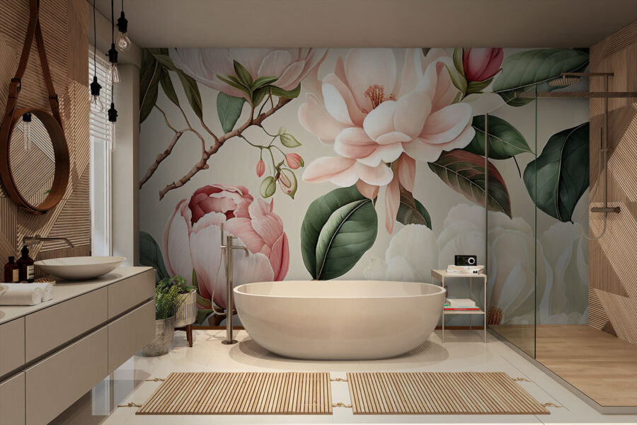 Transform your space with the “Delicate Blossoms and Lush Green Leaves” mural. Imagine walking into a room where soft petals and vibrant leaves are in bloom, bringing a touch of nature right inside. It’s like a spring garden that never wilts—perfect for those days when the outdoors just can’t compete. The gentle watercolor style adds a dreamy vibe, making it easy to unwind. Whether it’s in a cozy reading nook or a lively dining area, this mural invites warmth and charm. Friends might even ask if you’ve got a secret garden hidden away. Seriously, it’s that delightful!
