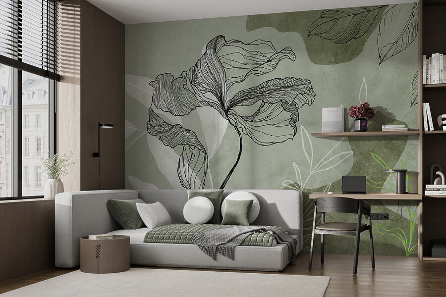 Transform your space with this charming “Wall Murals Drawing of a Flower.” It’s like bringing a calming garden indoors, minus the watering can. With soft greens and elegant line work, it feels like nature itself reached out to hug your walls. Imagine sipping your morning coffee, feeling the serene vibes wash over you as the floral design dances with the light. Perfect for cozy corners or that blank canvas of a wall you’ve been staring at, this mural sparks joy and whispers, “Take a deep breath.” Who knew home decor could be this soothing?