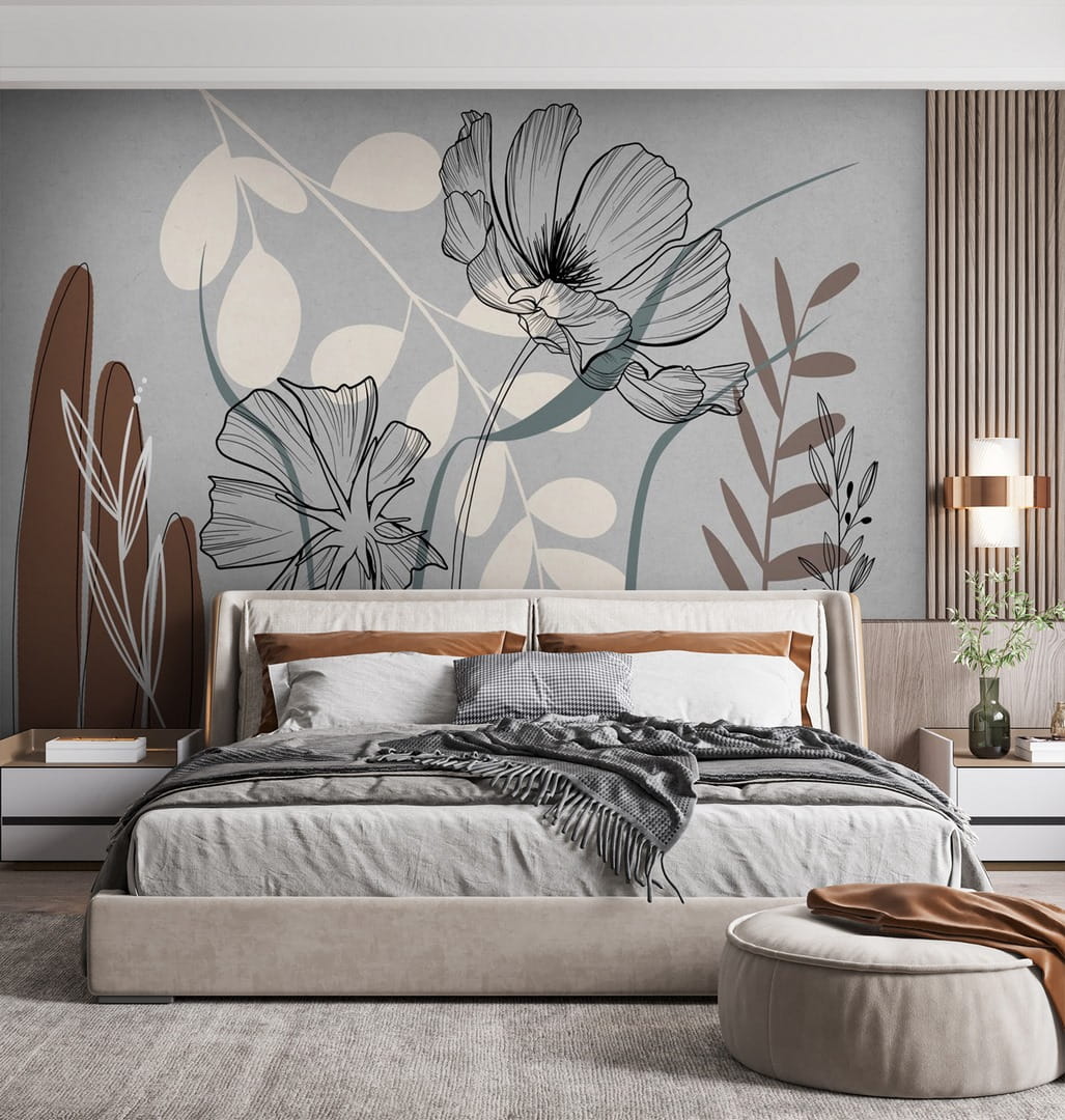 Bring a breath of the outdoors inside with this stunning wall mural featuring delicate flowers and leaves. The soft colors and artistic lines create a calming vibe, perfect for a cozy reading nook or a lively living room. Picture sinking into your favorite chair, a warm drink in hand, surrounded by this floral beauty. It’s like having a garden that never wilts—no watering necessary! This mural’s unique design adds personality and charm, making any space instantly feel more inviting. Just imagine the compliments!
