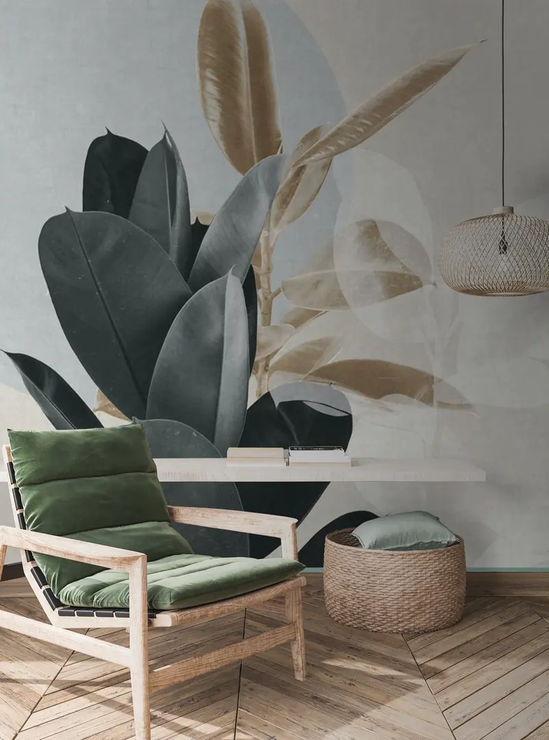Transform any room into a serene oasis with this stunning mural of foliage in gentle muted tones. Imagine waking up to a soft green embrace that invites tranquility right into your space. It’s like having a miniature jungle without the mosquitoes, perfect for those who love nature but prefer to stay indoors. Whether it’s a cozy reading nook or the main wall in a living room, this mural adds a stylish touch that feels both fresh and timeless. Friends might ask if you’ve gone for a tropical getaway—no one needs to know it’s just your savvy decor choice!