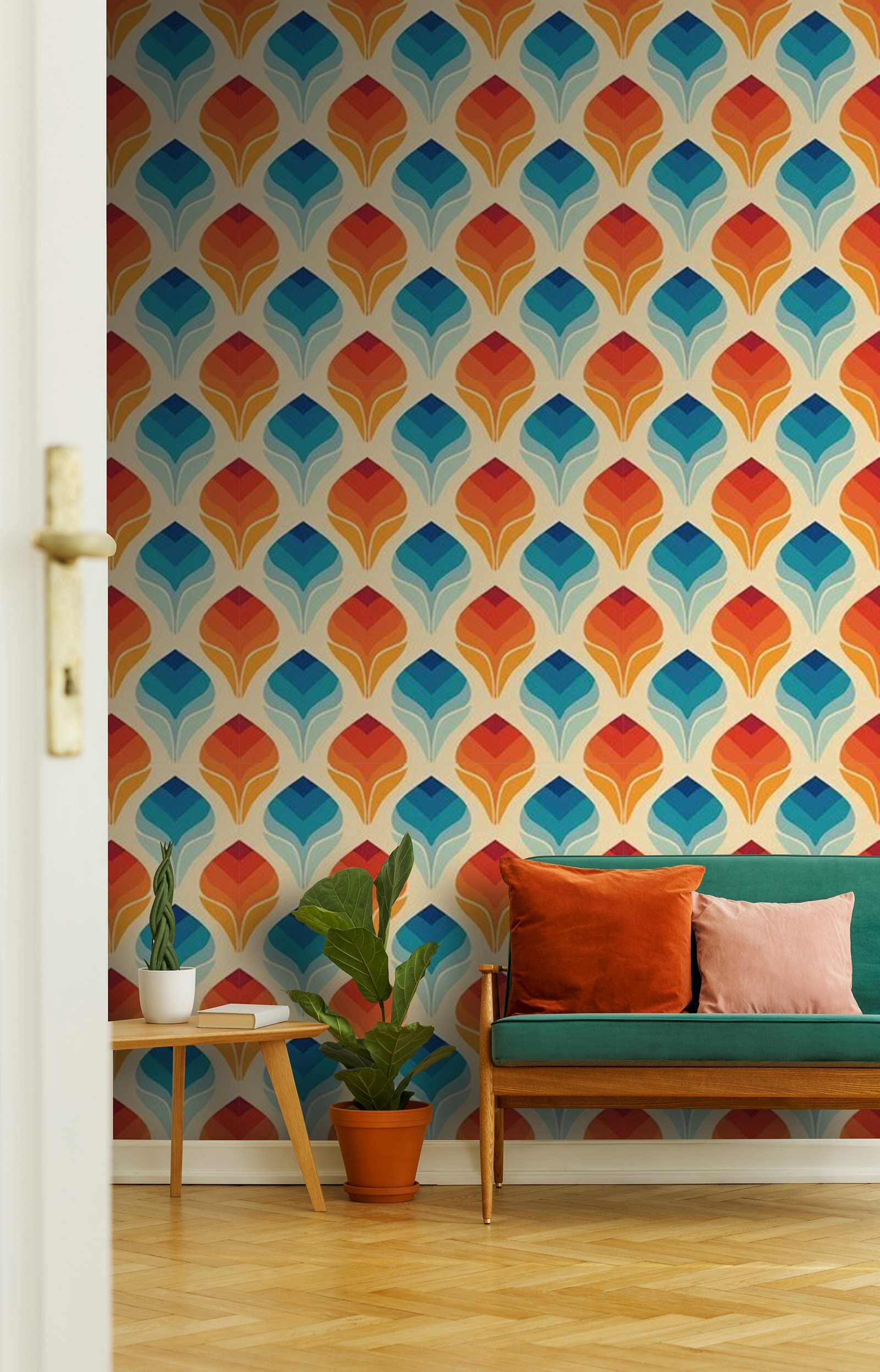 Transform any space with this lively wall mural featuring a playful pattern of orange and blue leaves. It’s like bringing a piece of nature indoors, but without the mess of actual soil. Picture it in a cozy nook or a bright kitchen—suddenly, you’ve got a conversation starter. Friends might even ask if you’ve gone full botanist! Each leaf feels like it’s dancing, creating a cheerful atmosphere that just makes you want to kick back with a cup of something warm. Whether it’s for a playful vibe or a calming retreat, this mural’s got you covered.