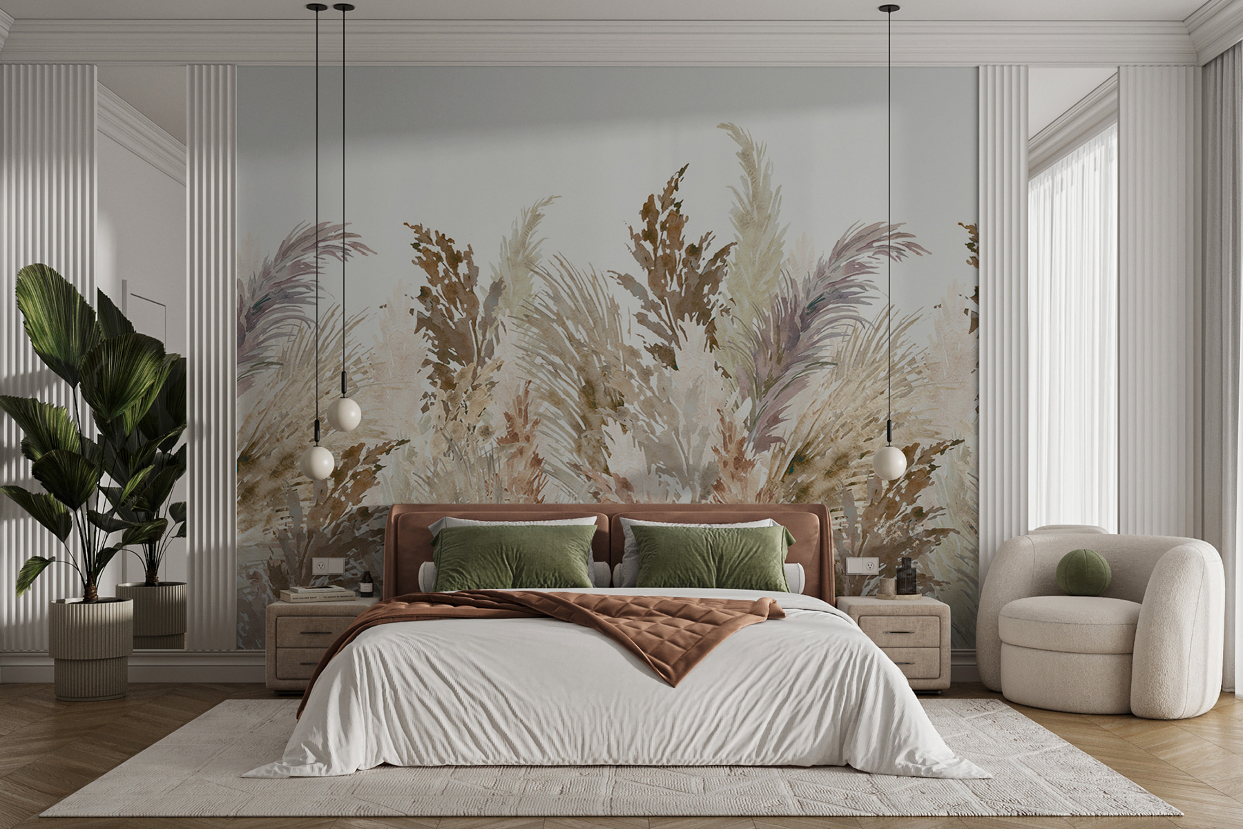 Transform any space with the Watercolor Pampas Grass Arrangement mural, and watch as it becomes the star of the room. Those soft, earthy tones are like a hug for your walls, bringing warmth and a hint of nature indoors. Picture sipping coffee in the morning, surrounded by those graceful wisps of grass that sway gently in the breeze—oh, the calming vibes! It’s perfect for creating a relaxed atmosphere, whether it’s a cozy nook or a lively living area. This mural harmonizes with just about any decor style, so no need to stress about matching. Painting the town green? More like painting the walls a beautiful beige! It’s all about the little moments you’ll cherish while soaking in this artistic escape.