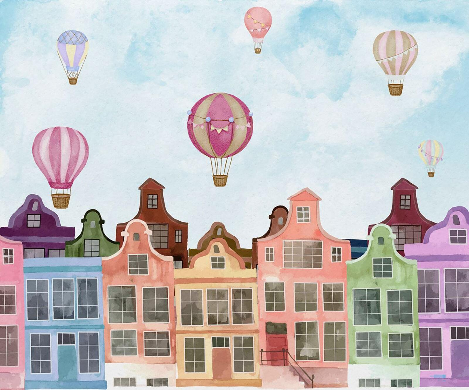 Every glance at this mural might just take you on a mini escape. Picture sipping your coffee while these vibrant buildings cheerfully gaze back at you, making mundane mornings feel special. Or, imagine how this beauty could inspire storytelling during family gatherings—everyone’s got their own balloon adventure. With its charming mix of colors, this mural will effortlessly lift your spirits like those hot air balloons floating on a sunny day. Perfect for a cozy nook, or that one wall that’s been feeling a bit lonely, it’s not just decor—it’s an experience waiting to happen.