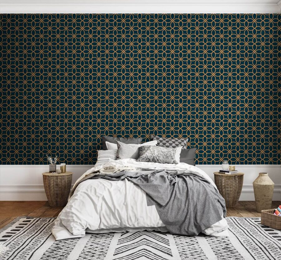 The rich background makes those warm circles pop, creating a striking contrast that’s sure to spark some conversation. Or maybe it’ll just make the perfect backdrop for those endless Zoom calls—it’s what every home office dreams of!