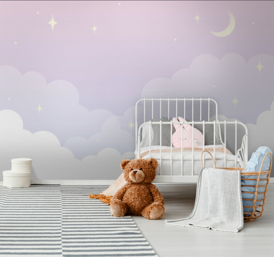 Transform any room with this dreamy mural of a moonlit sky, where soft clouds drift lazily under a sprinkle of stars. Imagine waking up to this serene scene—it’s like stepping into a gentle daydream every morning. Perfect for a cozy bedroom or a calming office space, it wraps your walls in tranquility. Friends might ask if you’ve moved into a celestial cottage (and you can let them think that). The pastel hues create an inviting aura, making even the crankiest of Mondays feel like a Sunday afternoon. So, if you’re in need of a little magic in your life, this mural’s got your back!